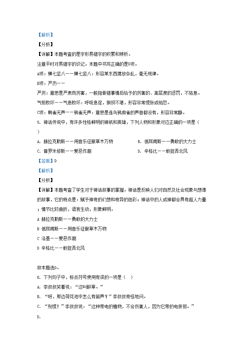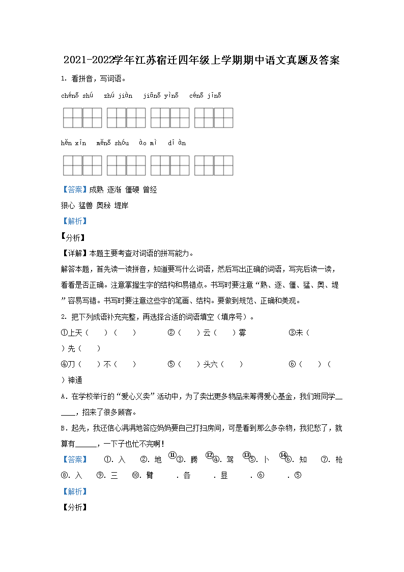 2021-2022学年江苏宿迁四年级上学期期中语文真题及答案(Word版)09-16