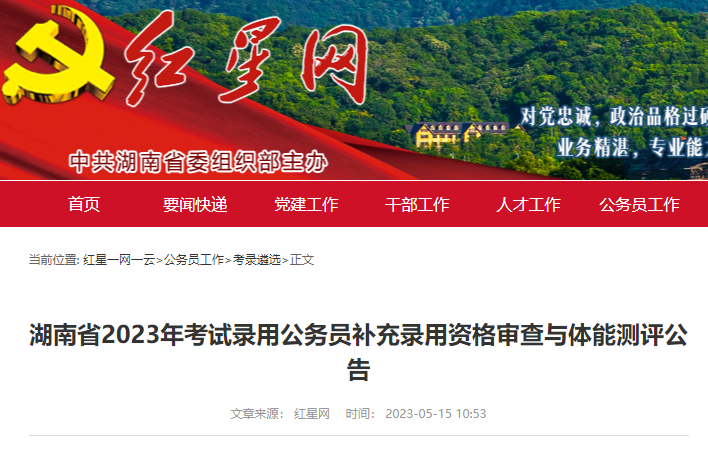 2023年湖南省公务员补充录用资格审查与体能测评公告05-16