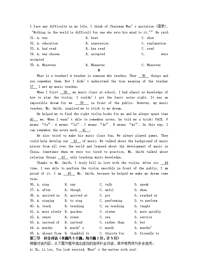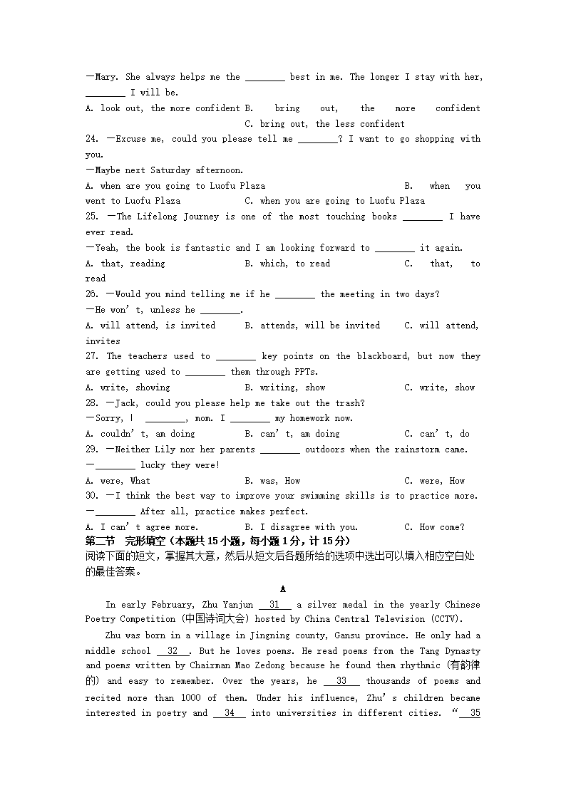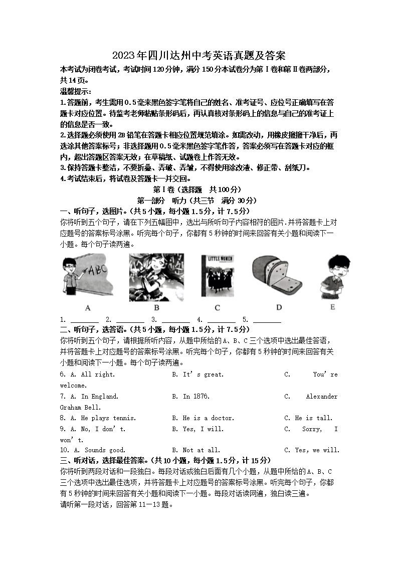 【文档预览】 文档大全网整理发布2023年四川达州中考英语真题及答案(Word版),前五页预览如下: