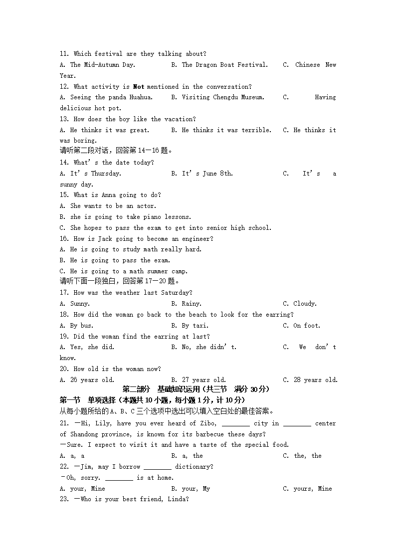 2023年四川达州中考英语真题及答案(Word版)06-15