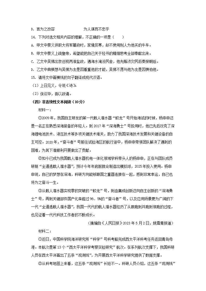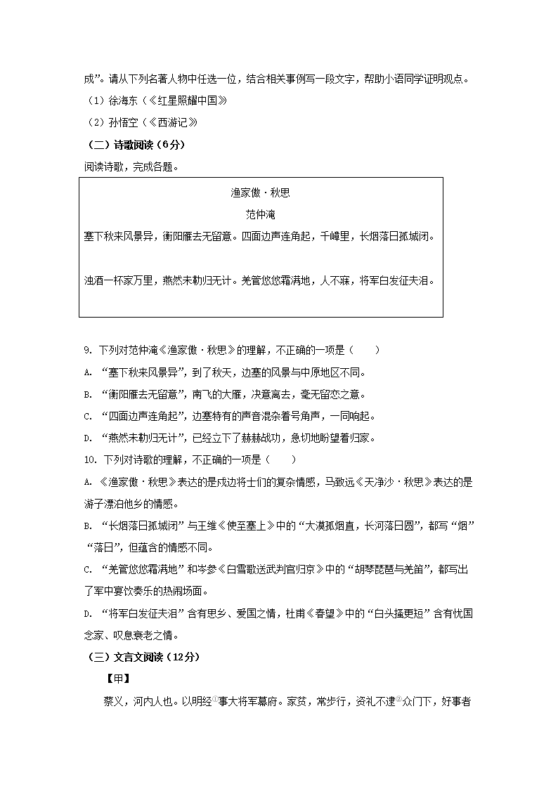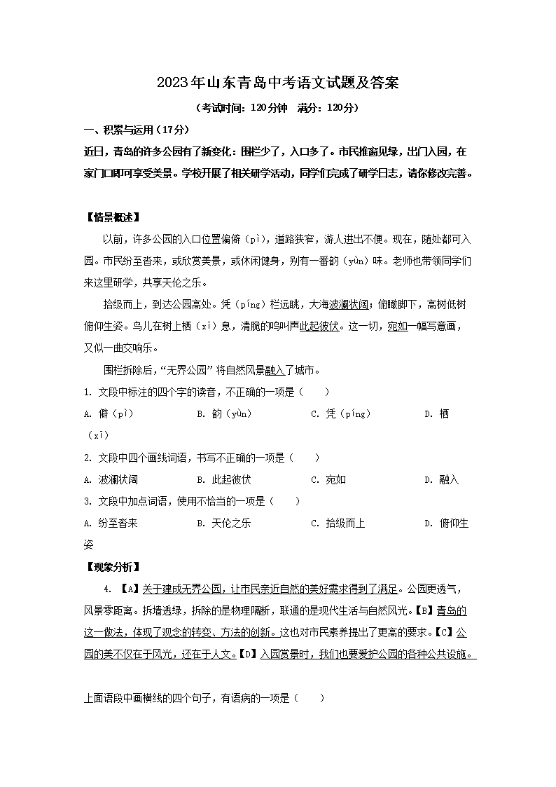 2023年山东青岛中考语文试题及答案(Word版)10-09