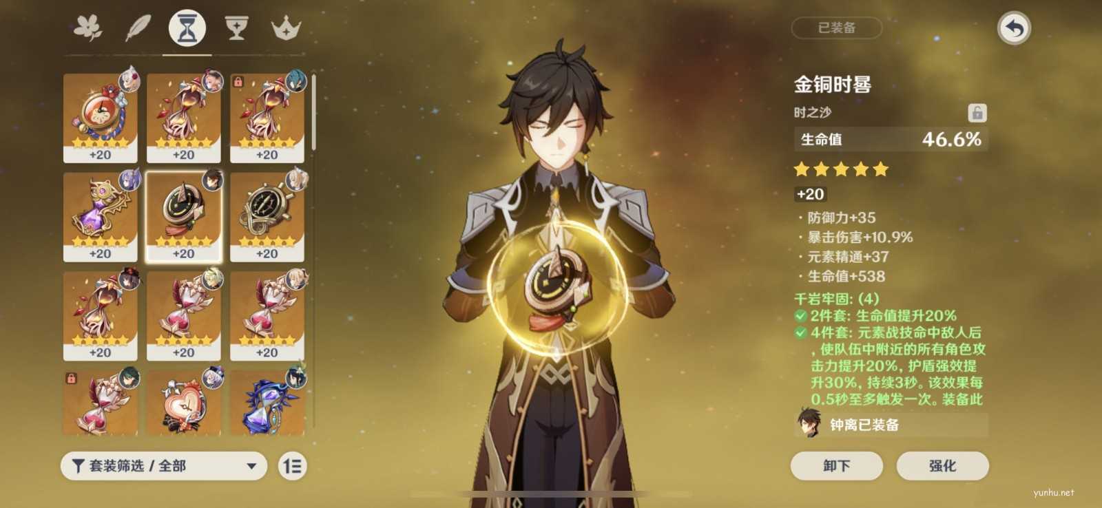 大招流:宗室一套或二宗二岩伤套,岩伤杯、攻击生命沙漏都可以就看是否在意护盾强度和岩盾减抗了。副词条和物理的一样并无太大区别。