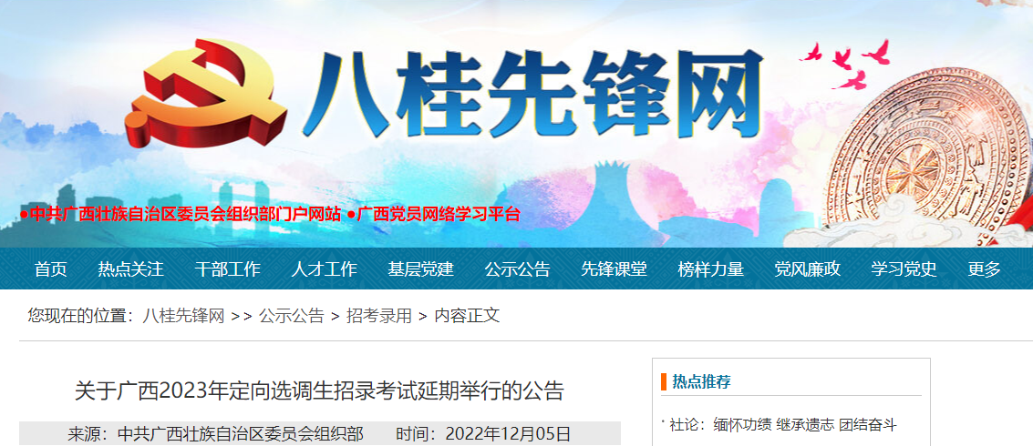 原文标题:关于广西2023年定向选调生招录考试延期举行的公告