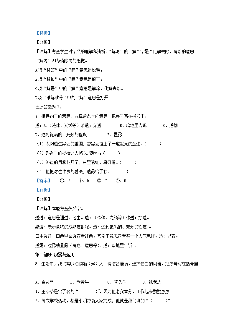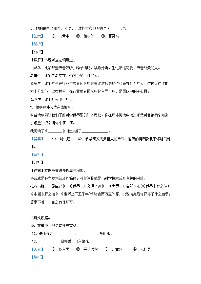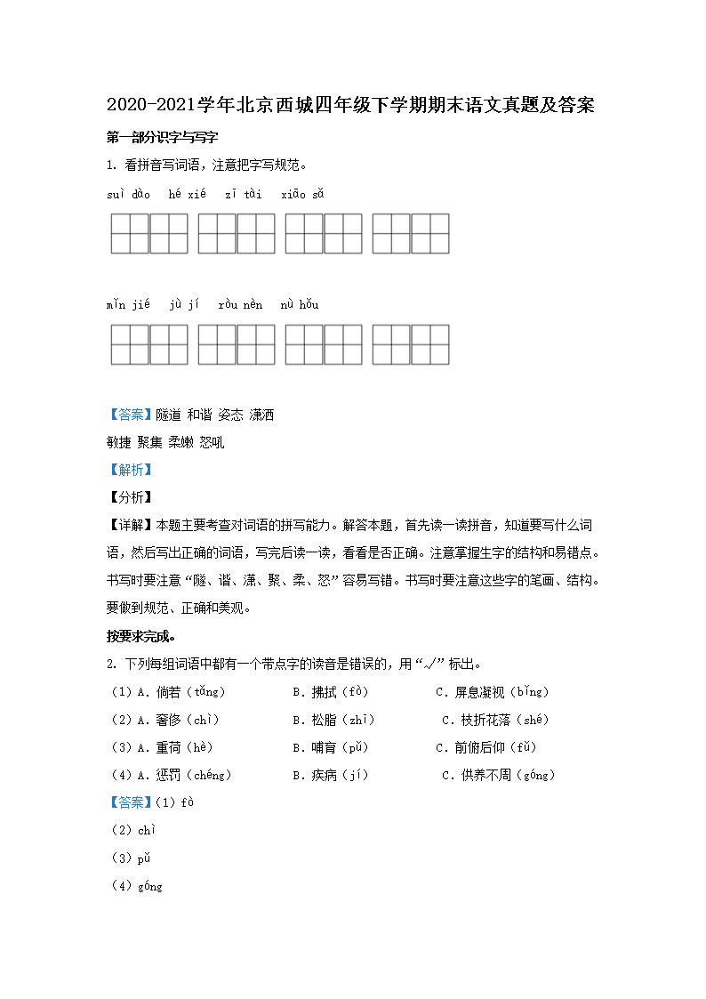 2020-2021学年北京西城四年级下学期期末语文真题及答案(Word版)07-05