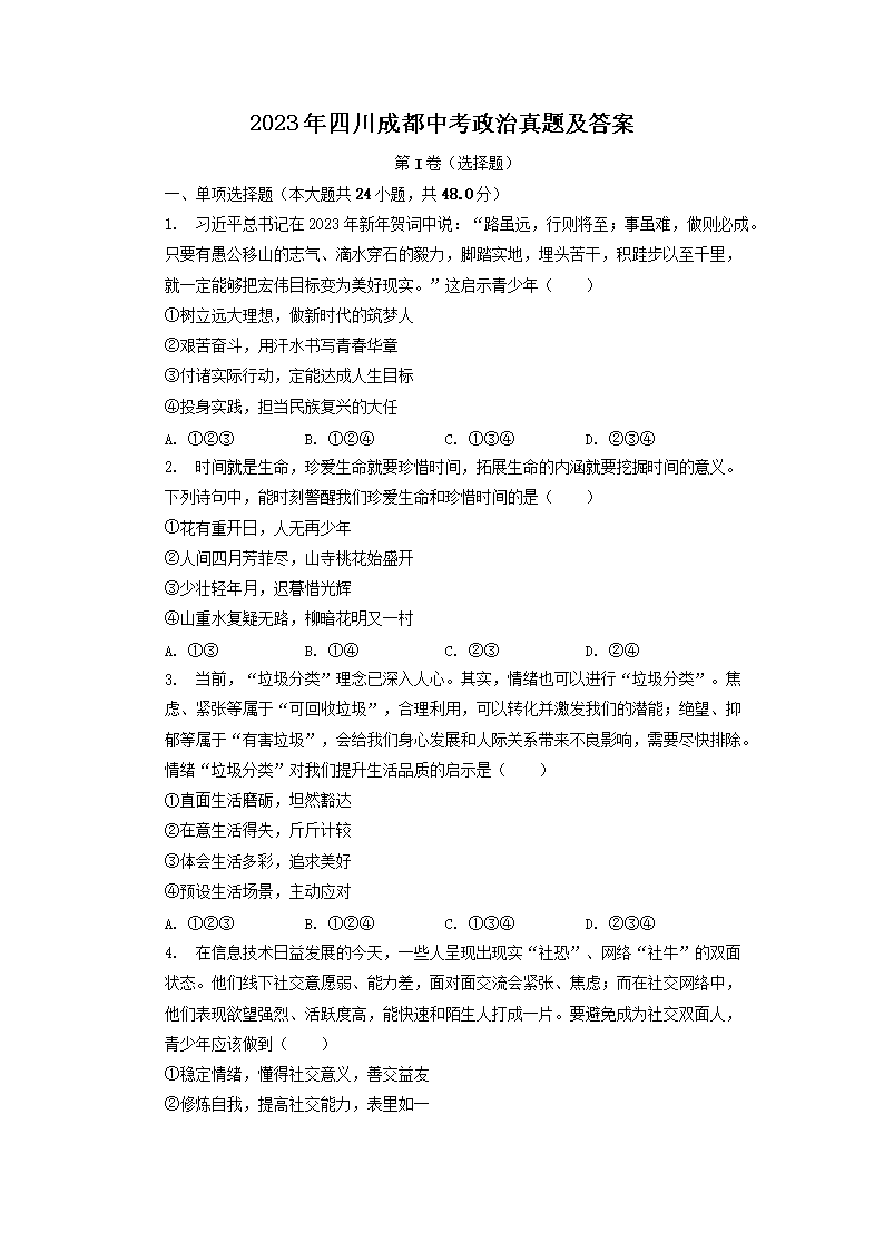 2023年四川成都中考政治真题及答案(Word版)06-22