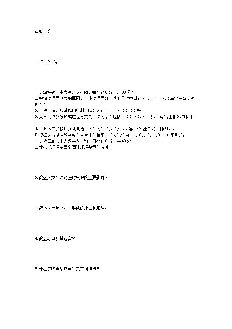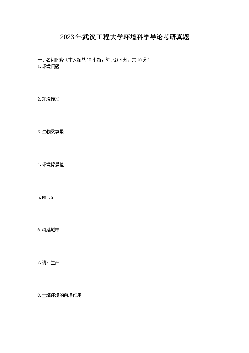 2023年武汉工程大学环境科学导论考研真题(Word版)10-12