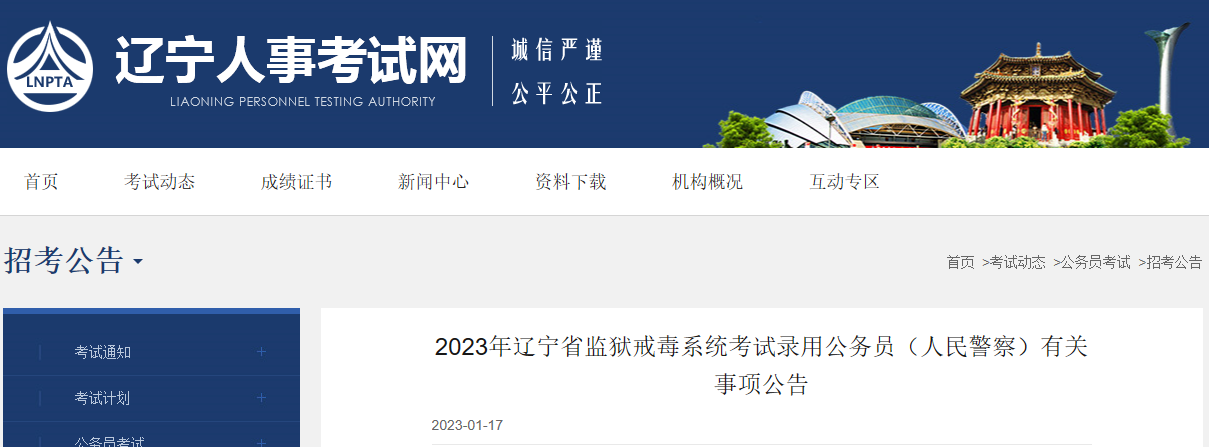 原文标题:2023年辽宁省监狱戒毒系统考试录用公务员(人民警察)有关事项公告