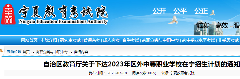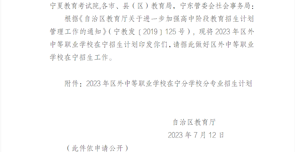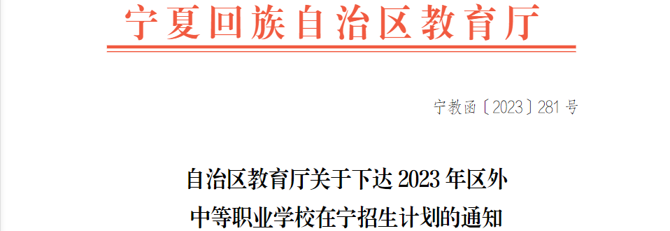 2023年区外中等职业学校在宁夏招生计划的通知07-19