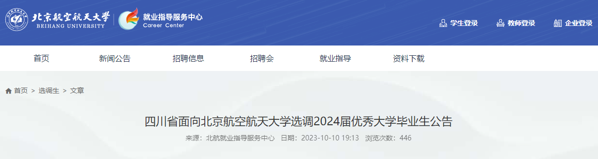 【#选调生考试# #四川省面向北京航空航天大学选调2024届优秀大学毕业生公告#】®文档大全网从北京航空航天大学就业指导服务中心了解到,四川省面向北京航空航天大学选调2024届优秀大学毕业生,报名时间:2023年10月18日-25日,考试时间:2023年11月11日,相关事宜详情如下: