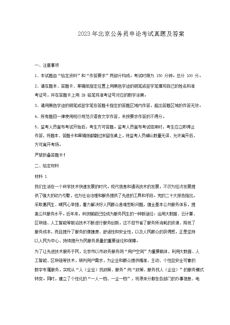 【文档预览】 文档大全网整理发布2023年北京公务员申论考试真题及答案(Word版),前五页预览如下: