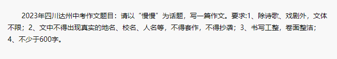 【#中考# 导语】2023年四川达州中考语文考试已经结束,©文档大全网为大家整理了2023年四川达州中考作文题目供大家参考,作文题目详情如下: