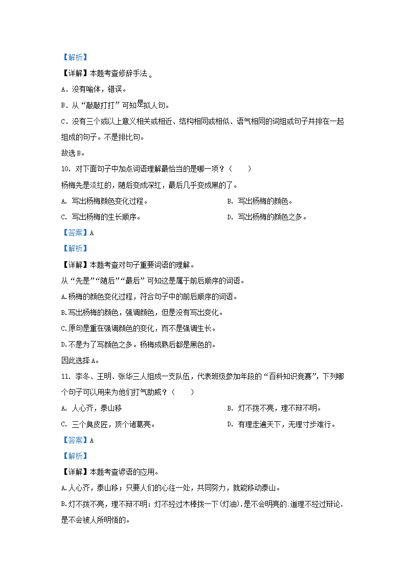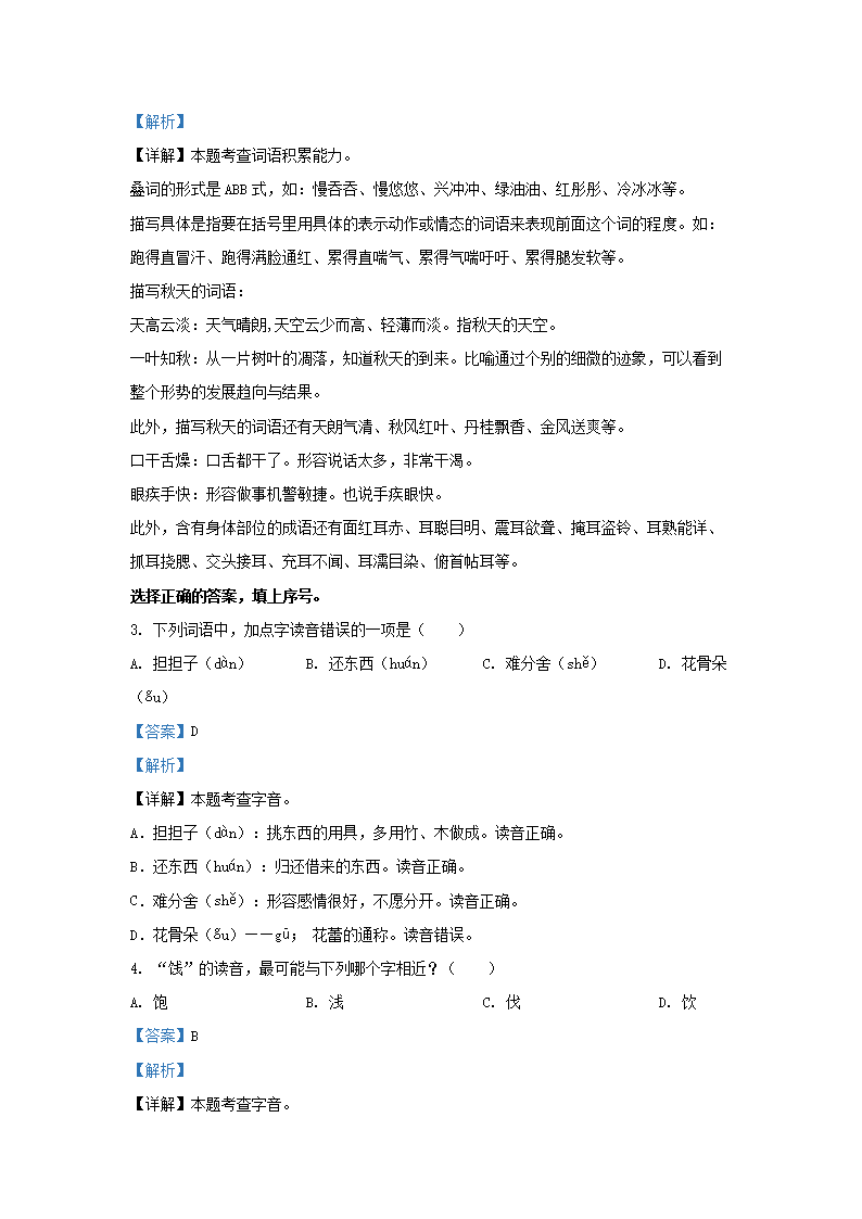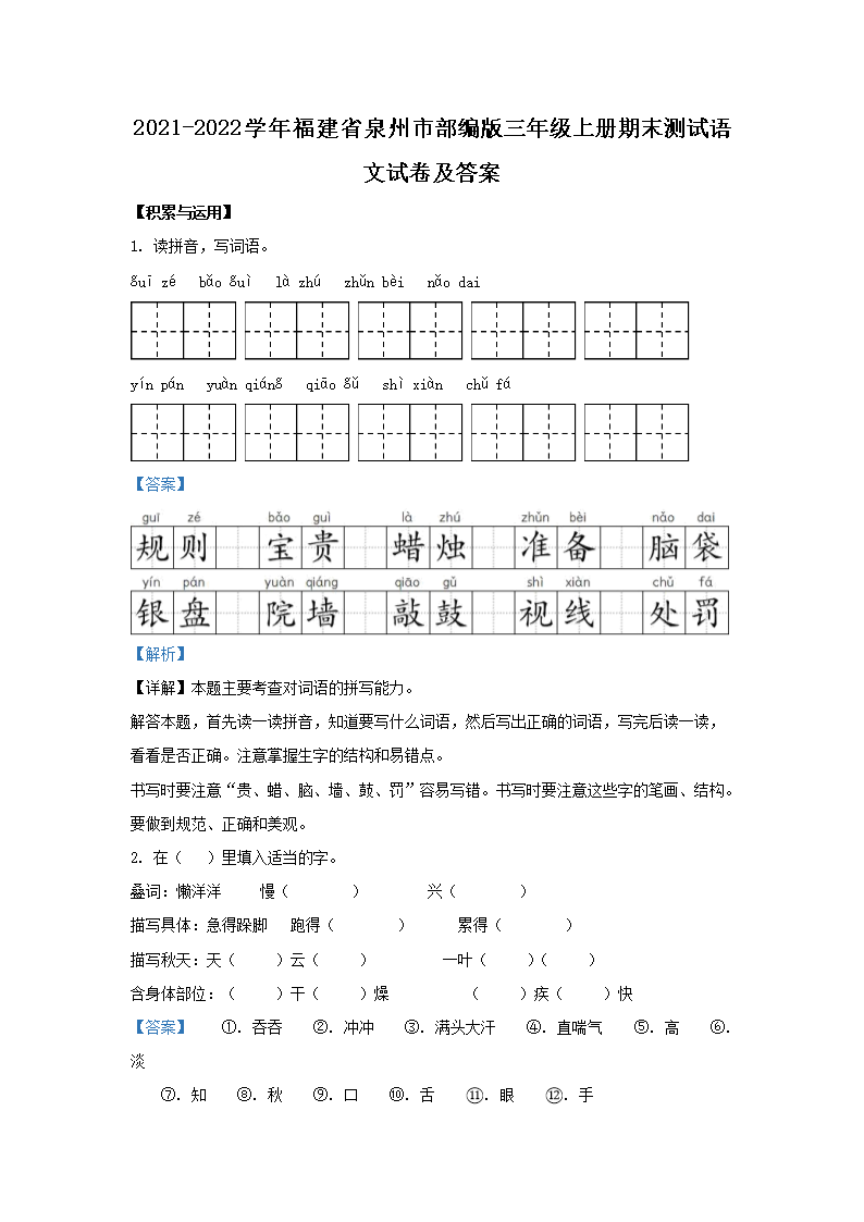 2021-2022学年福建省泉州市部编版三年级上册期末测试语文试卷及答案(Word版)09-16