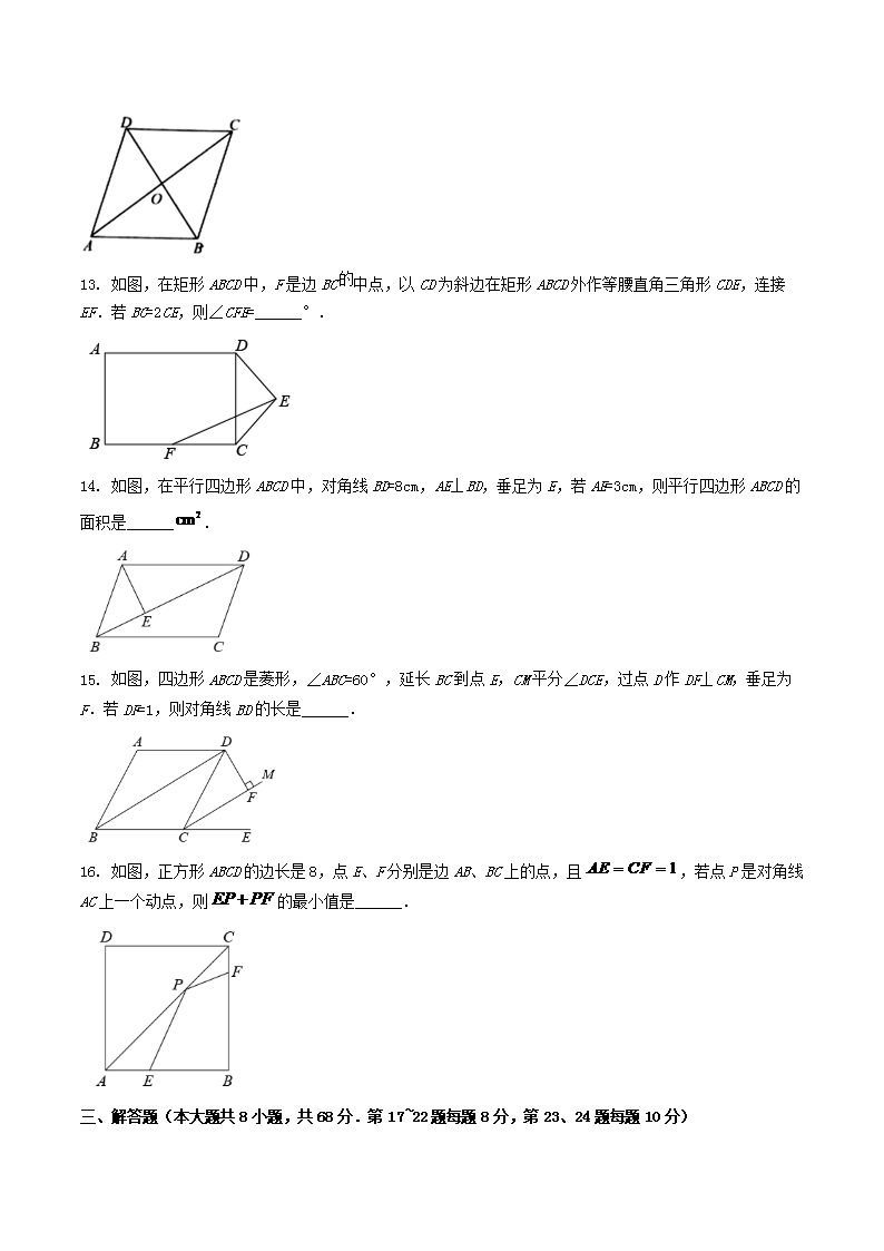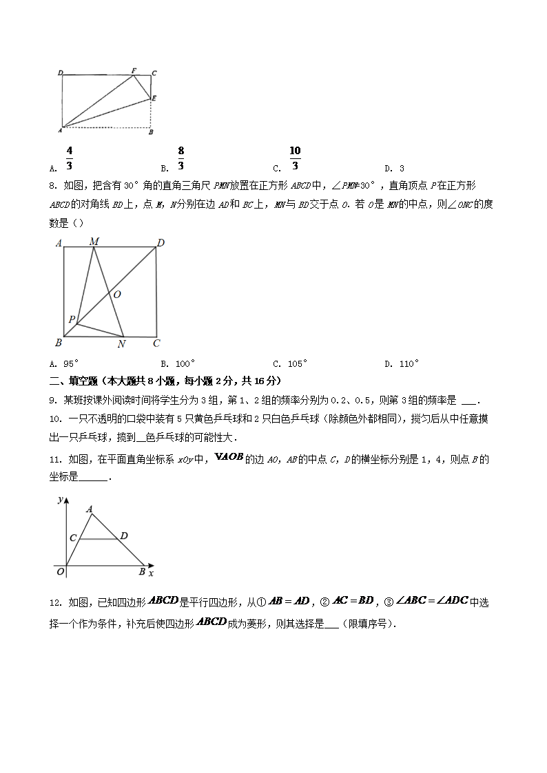 2021-2022学年江苏省常州市金坛区八年级下学期期中数学试题及答案(Word版)10-20
