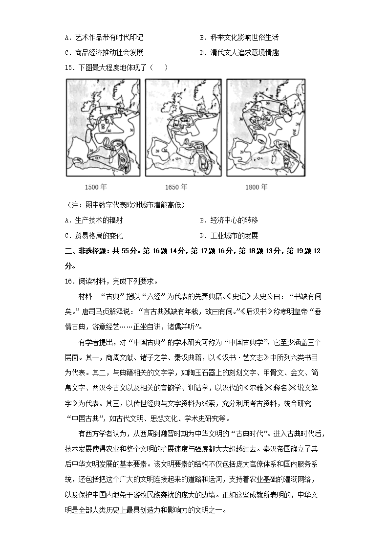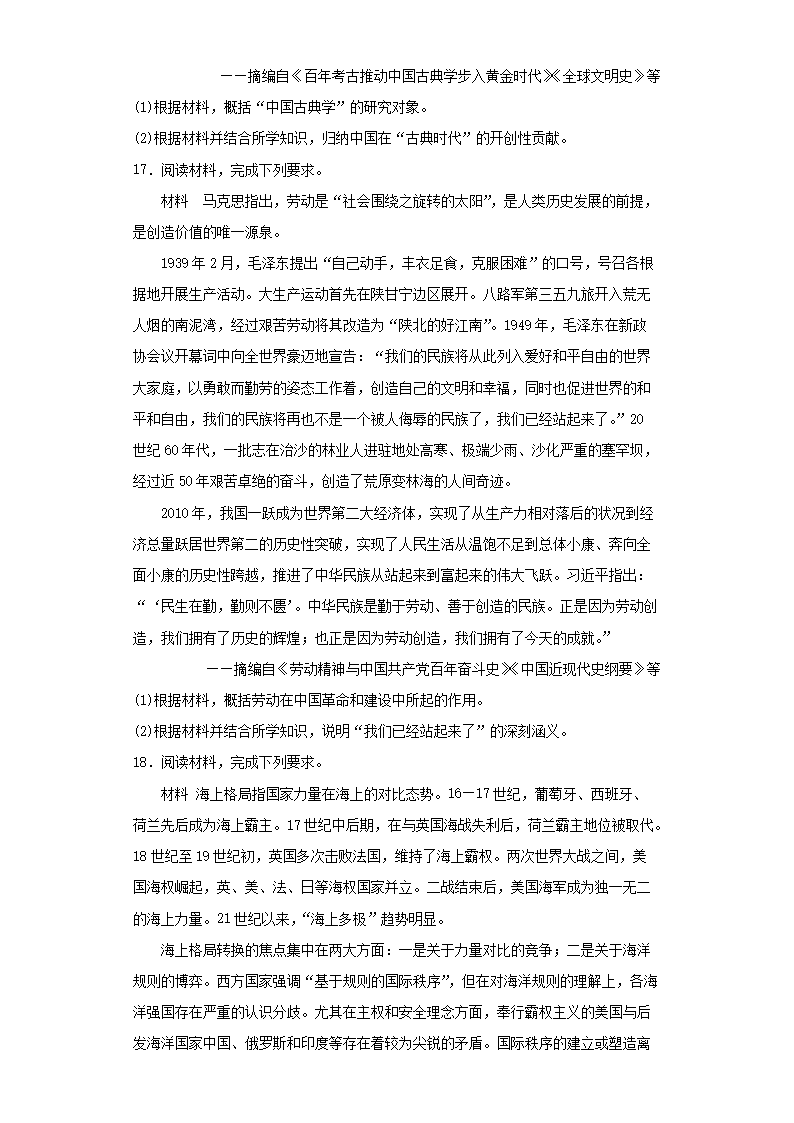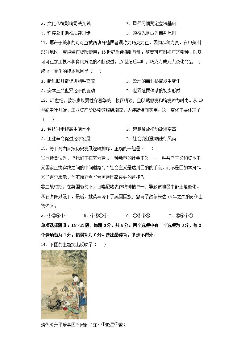 2023年海南学考选择性考试历史真题及答案(Word版)07-13