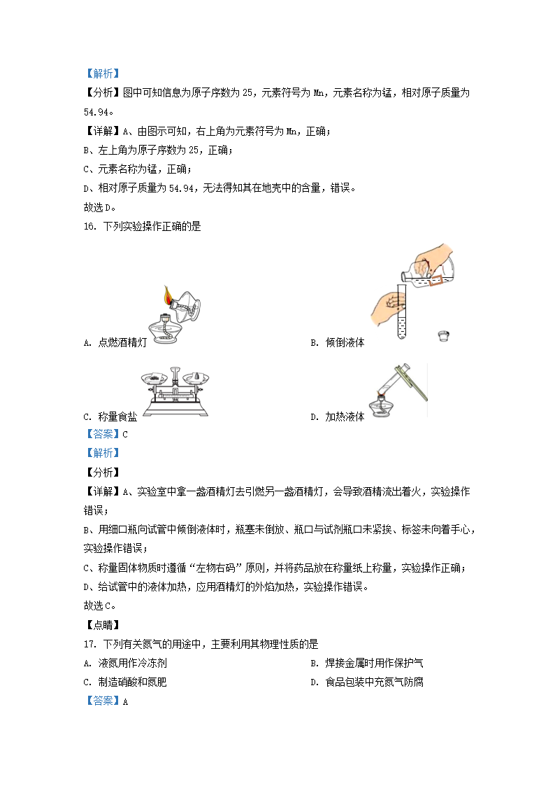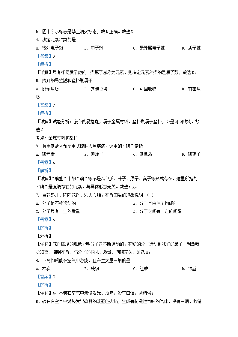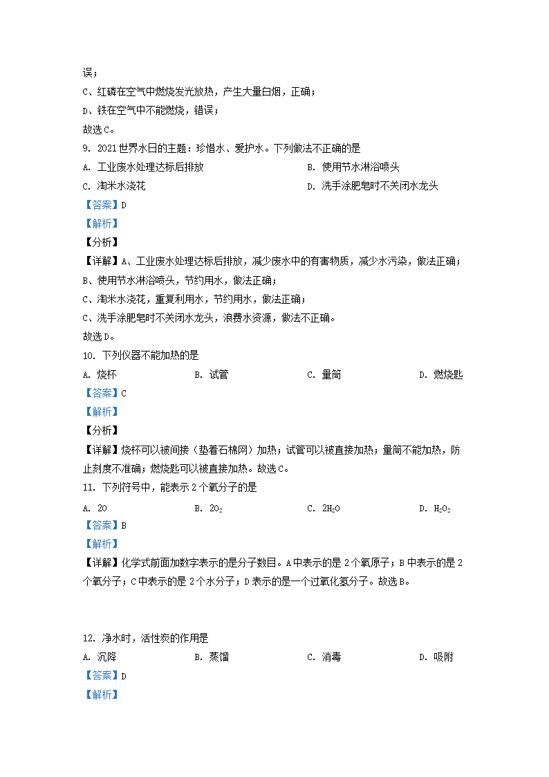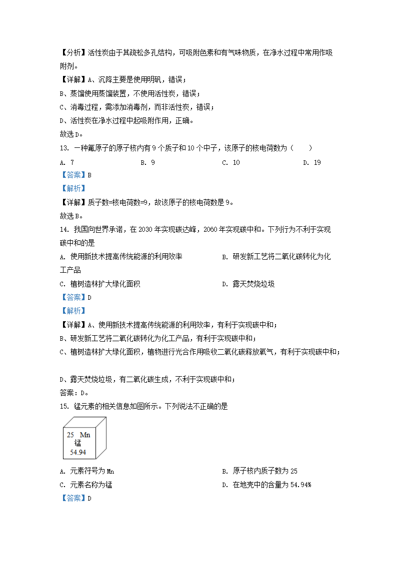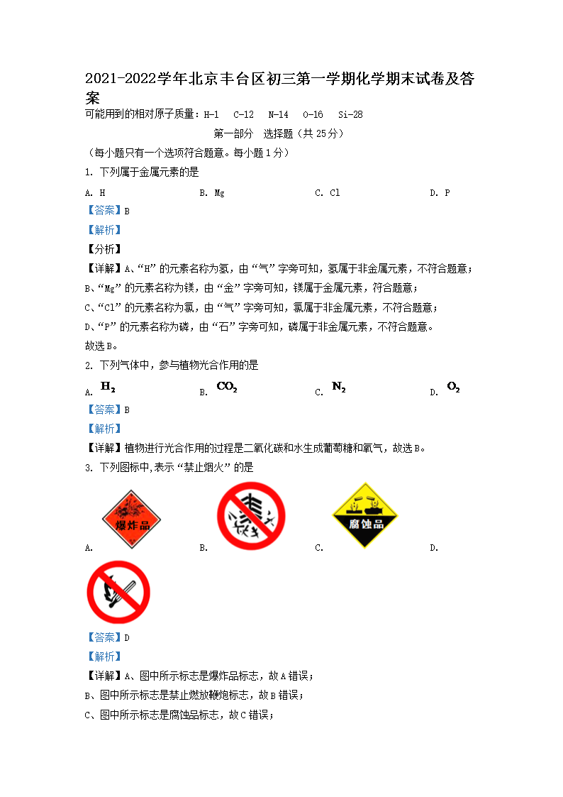 2021-2022学年北京丰台区初三第一学期化学期末试卷及答案(Word版)07-14