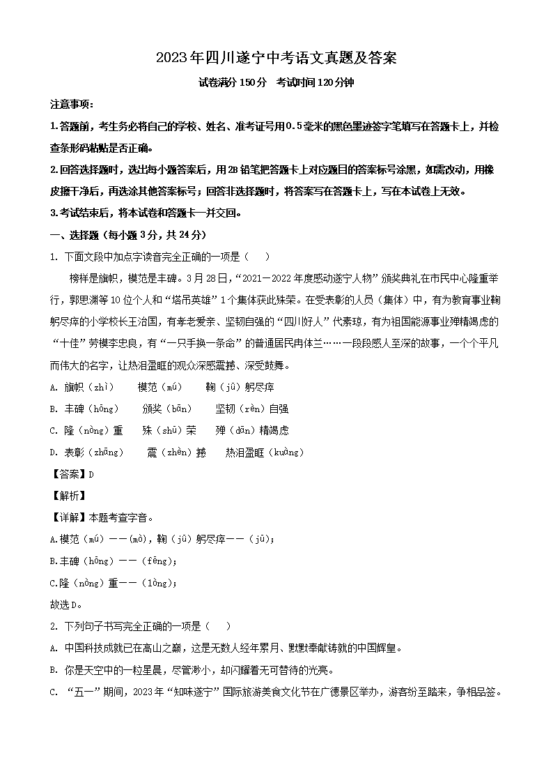 2023年四川遂宁中考语文真题及答案(Word版)06-22