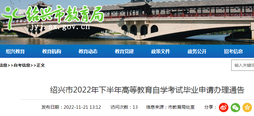 原文标题:绍兴市2022年下半年高等教育自学考试毕业申请办理通告