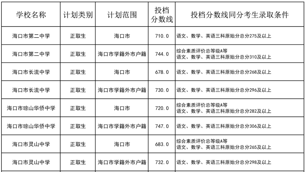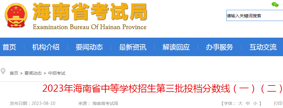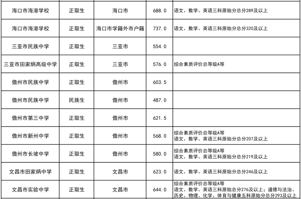 2023年海南省中等学校招生第三批投档分数线(一)(二)08-11