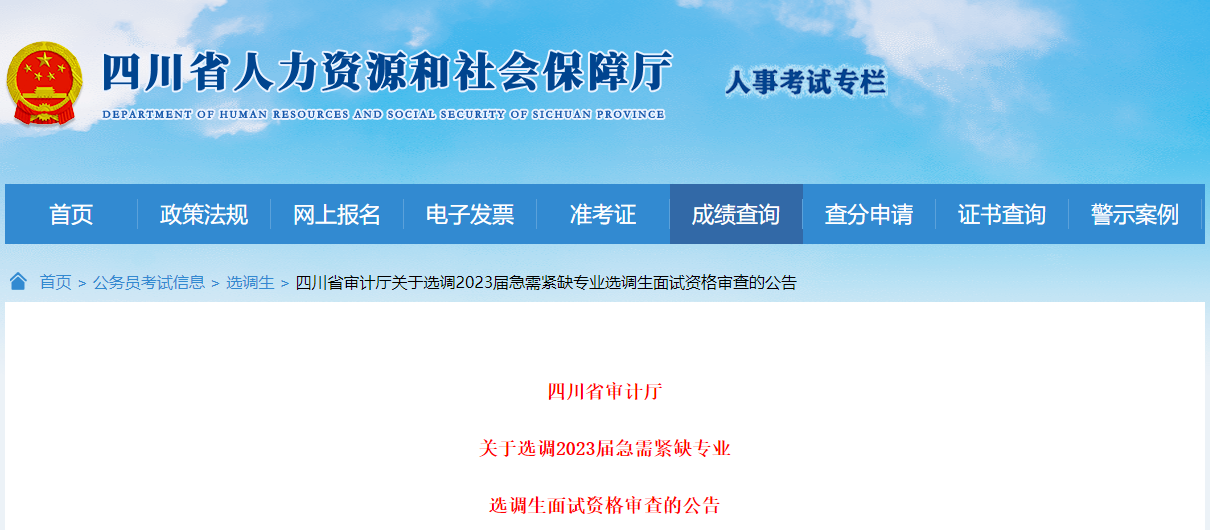 原文标题:四川省审计厅关于选调2023届急需紧缺专业选调生面试资格审查的公告