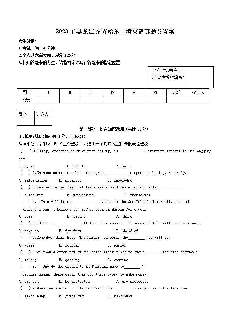 2023年黑龙江齐齐哈尔中考英语真题及答案(Word版)06-29