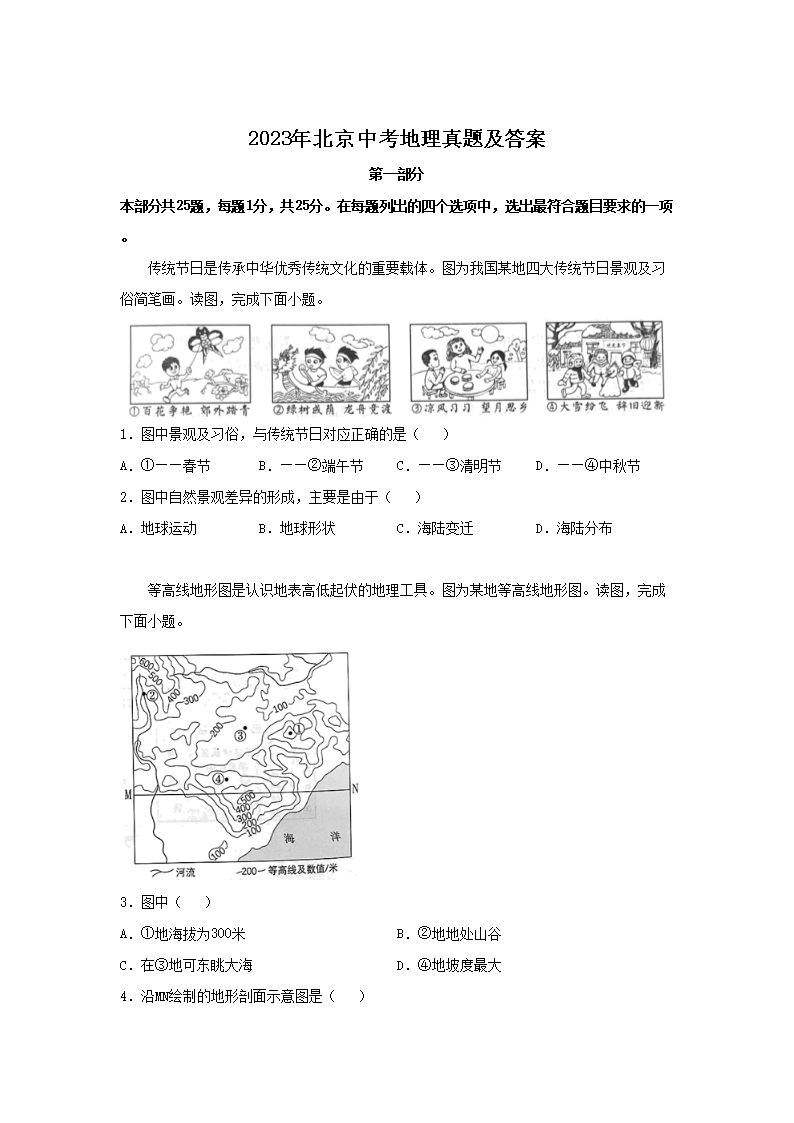 2023年北京中考地理真题及答案(Word版)08-01