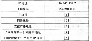 【4】【解析】子网内第—个可用的IP地址即为网络号后的第一个IP地址,因此【4】处应填入:116.144.0.1。