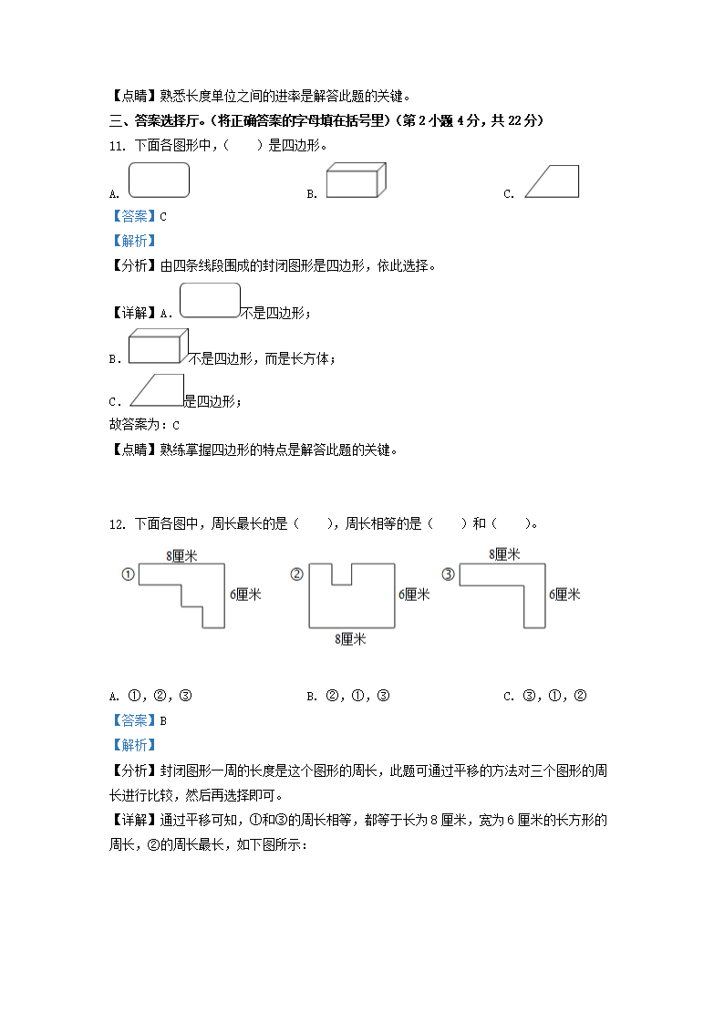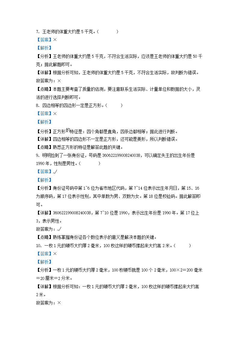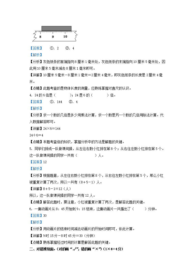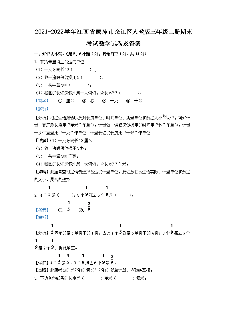 2021-2022学年江西省鹰潭市余江区人教版三年级上册期末考试数学试卷及答案(Word版)09-27