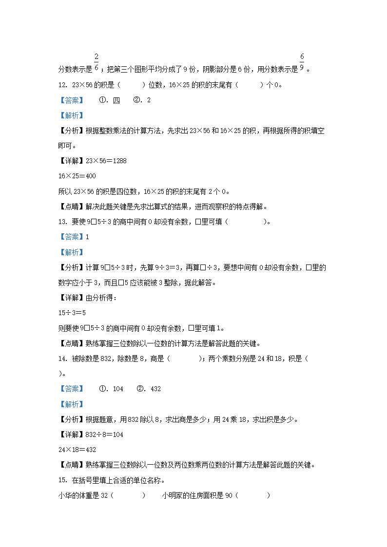 2021-2022学年广东省深圳市龙华区北师大版三年级下册期末考试数学试卷及答案(Word版)08-24