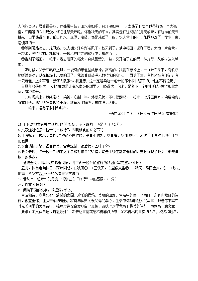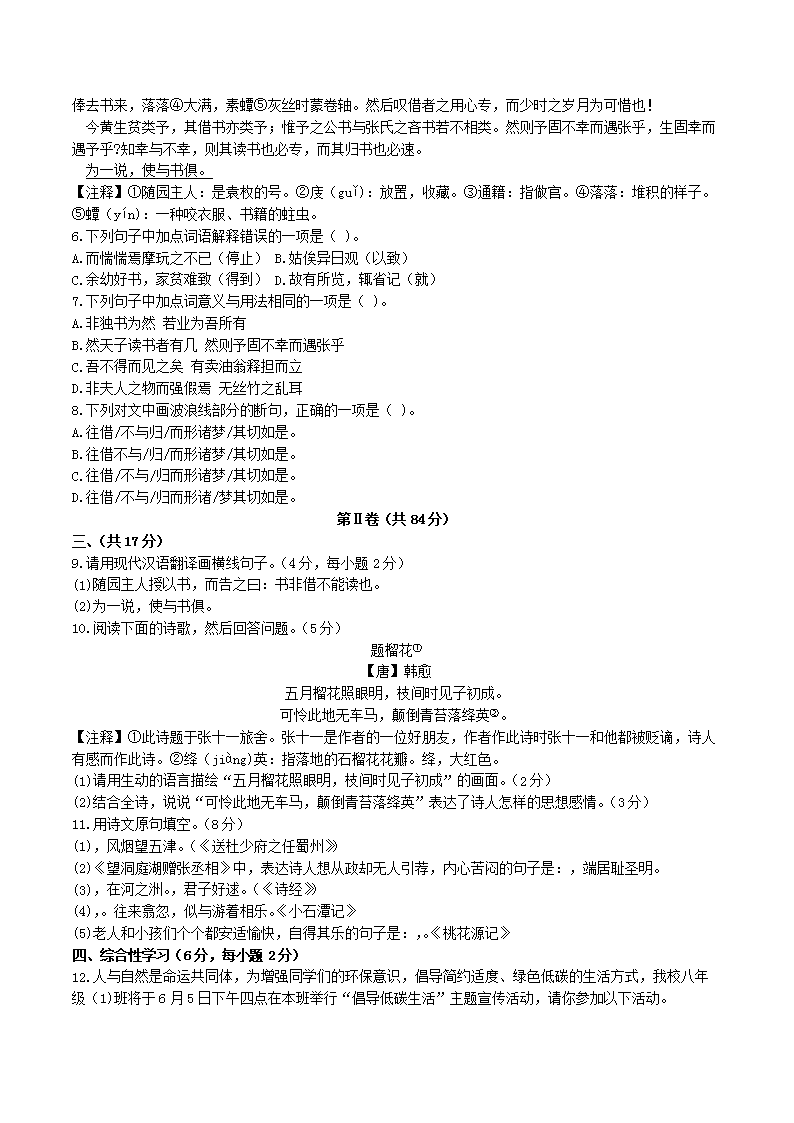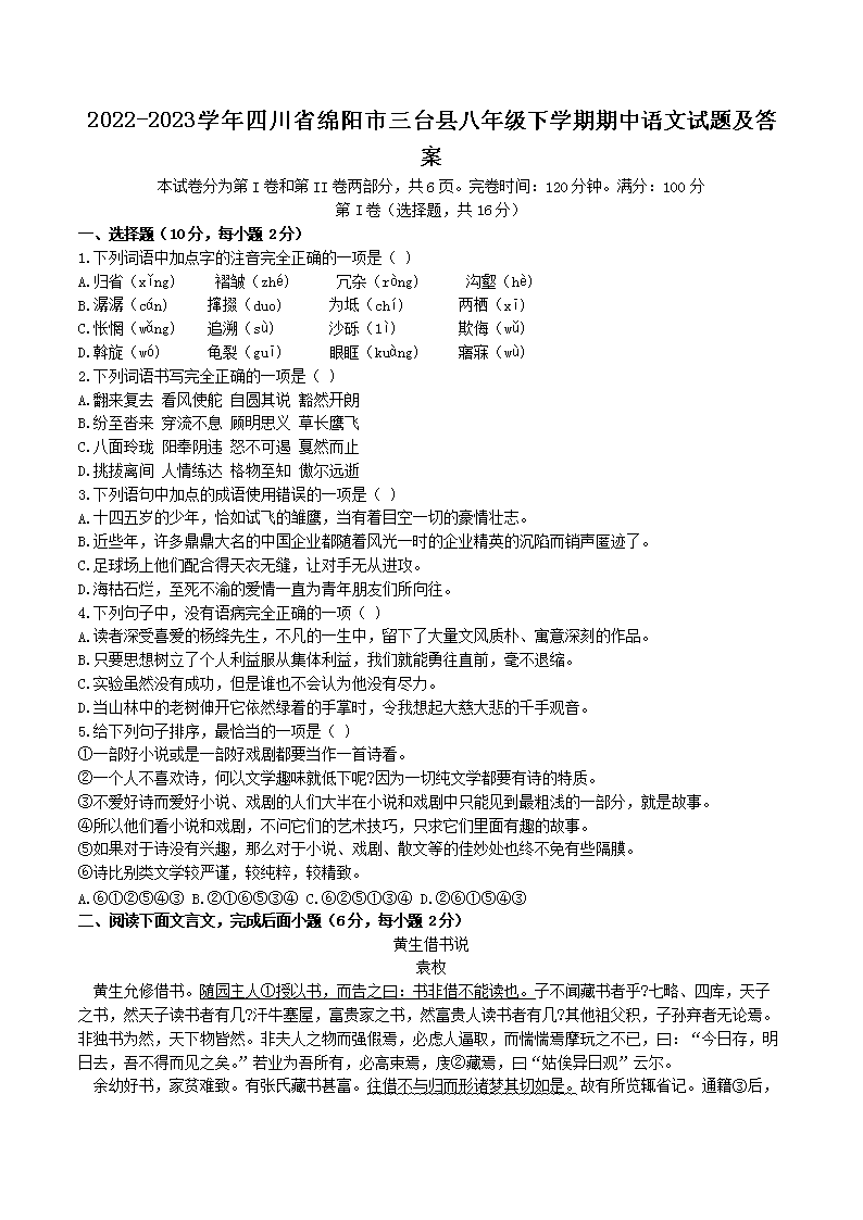 2022-2023学年四川省绵阳市三台县八年级下学期期中语文试题及答案(Word版)10-14