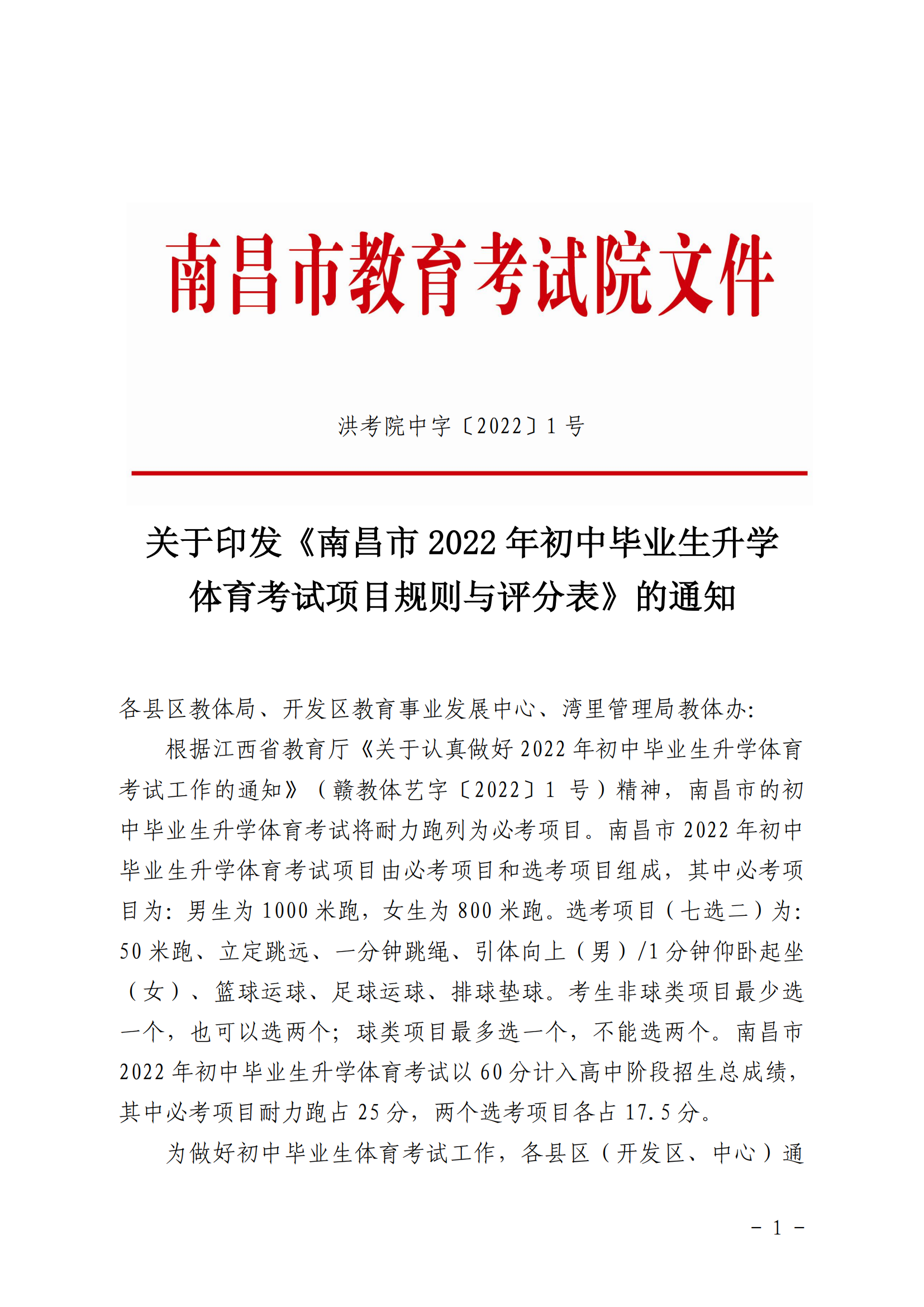 【#中考# 导语】®文档大全网从南昌市教育考试院了解到,江西南昌2022年初中毕业生升学体育考试项目规则与评分表已发布,详细内容如下: