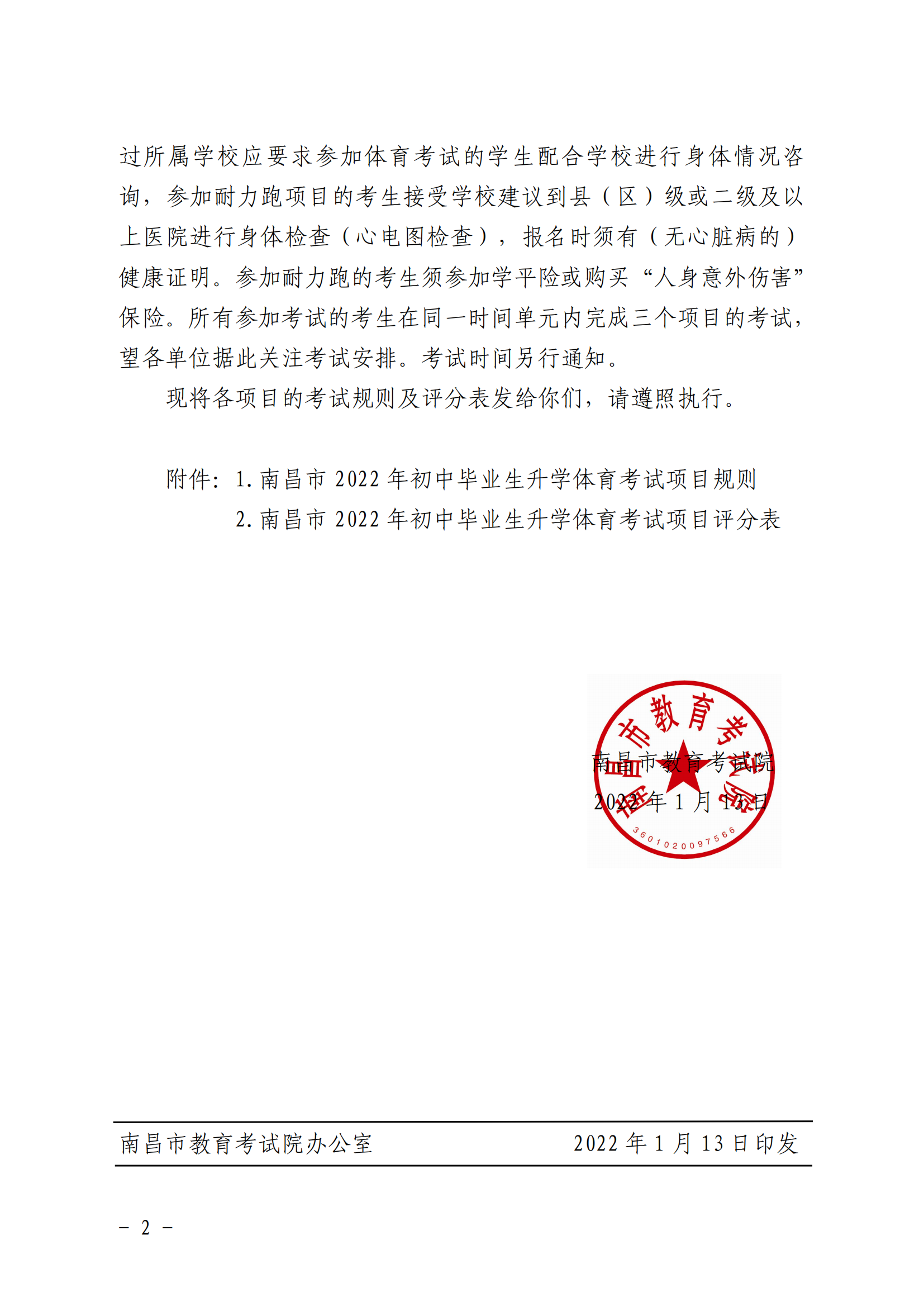 江西南昌2022年初中毕业生升学体育考试项目规则与评分表12-25