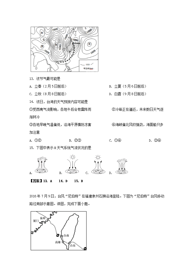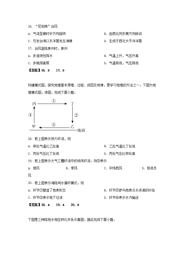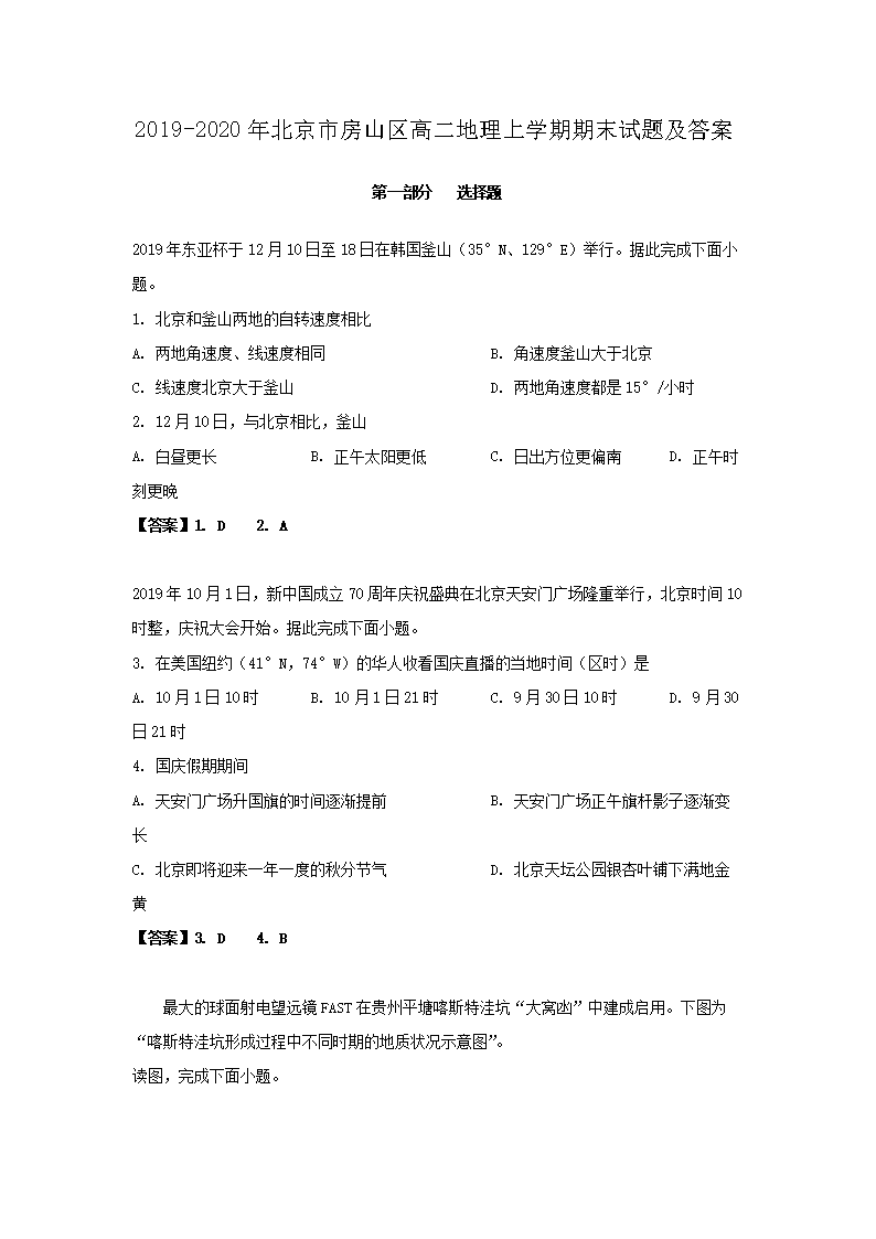 2019-2020年北京市房山区高二地理上学期期末试题及答案(Word版)06-29