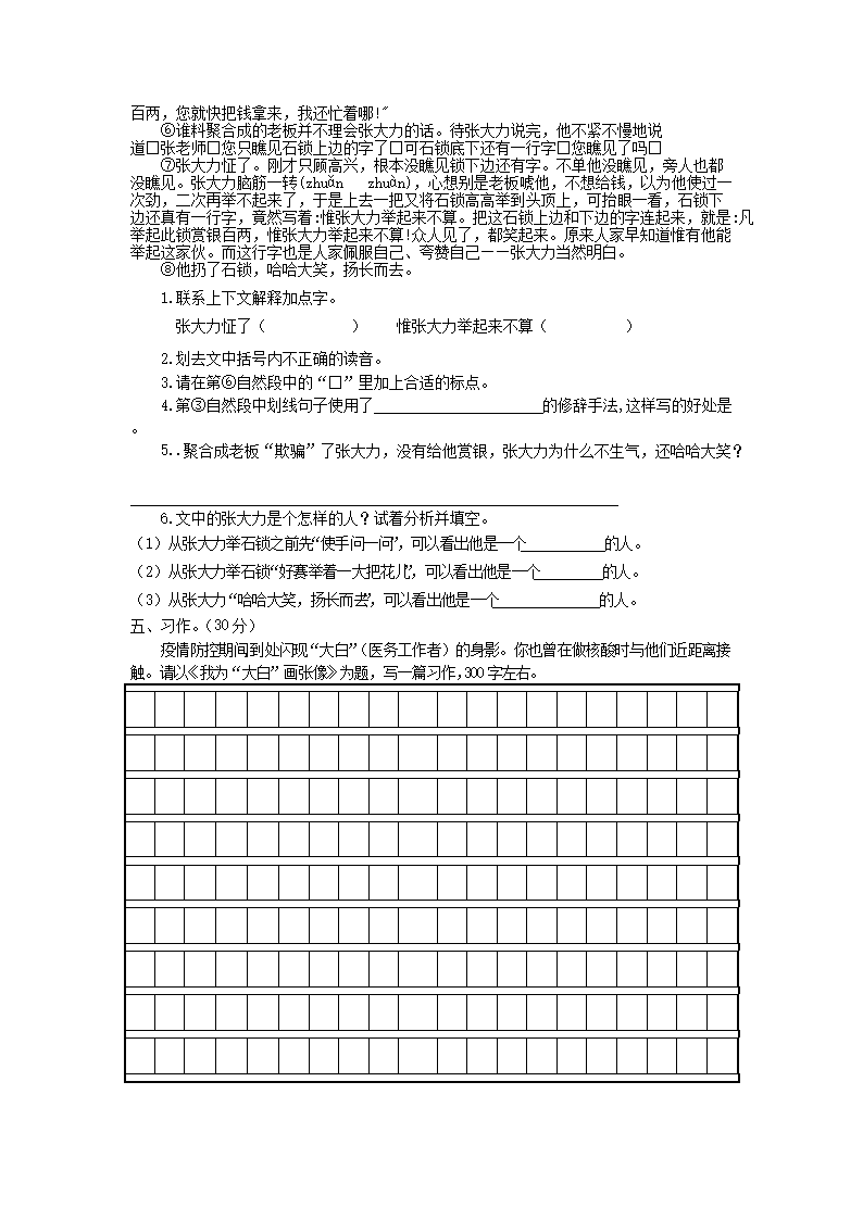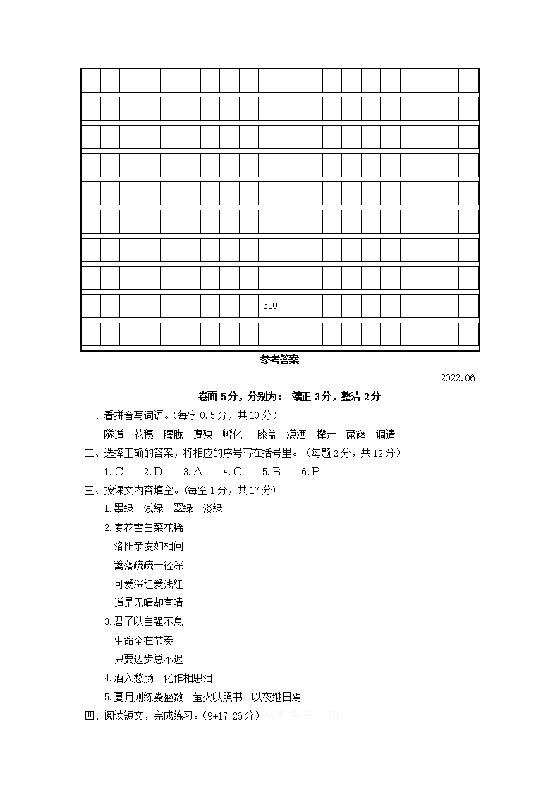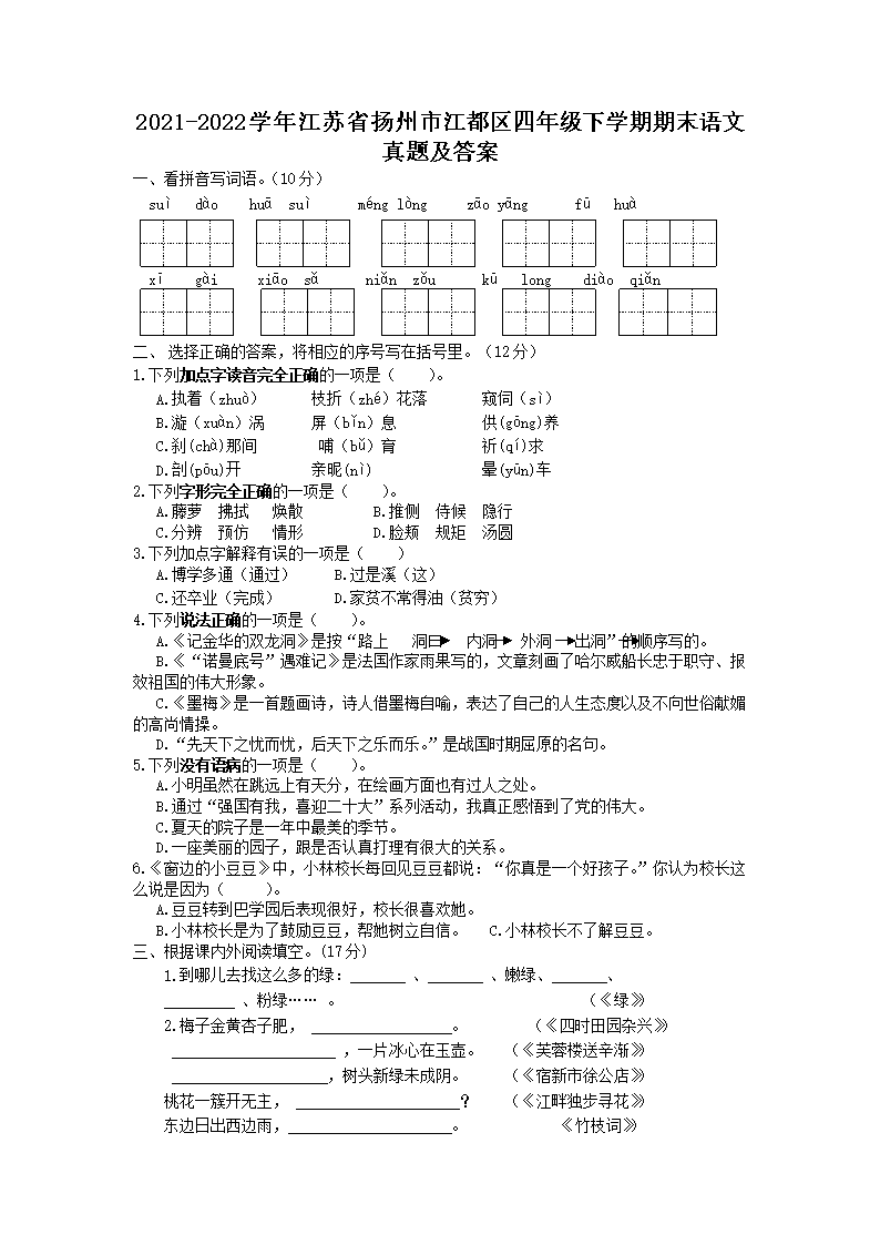 2021-2022学年江苏省扬州市江都区四年级下学期期末语文真题及答案(Word版)09-21