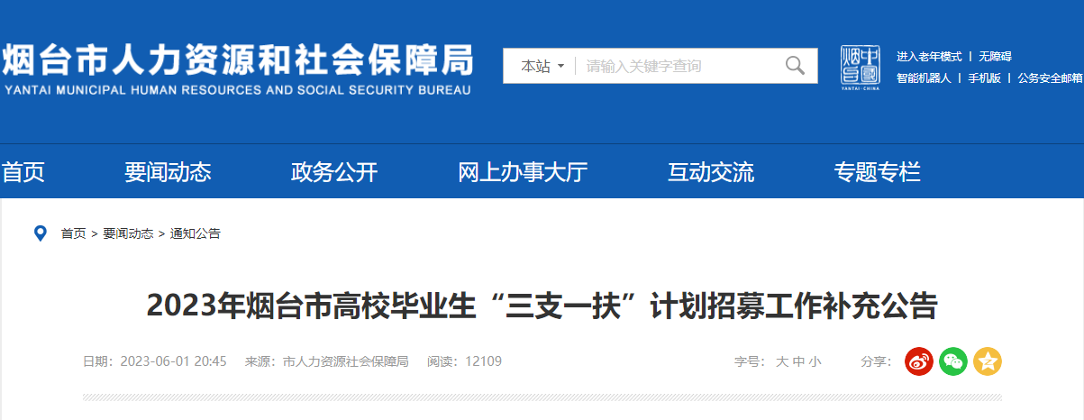 2023年山东烟台市高校毕业生“三支一扶”计划招募工作补充公告(134人)06-07