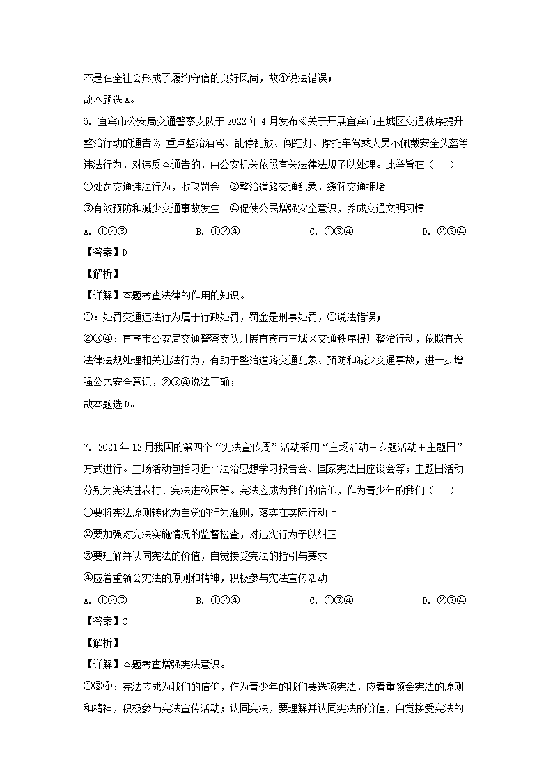 【文档预览】 文档大全网整理发布2022年四川省宜宾市中考道德与法治真题及答案(Word版),前五页预览如下: