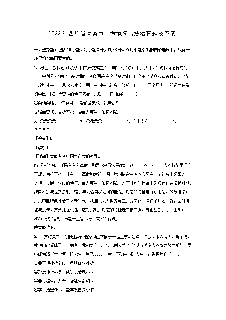 2022年四川省宜宾市中考道德与法治真题及答案(Word版)05-27