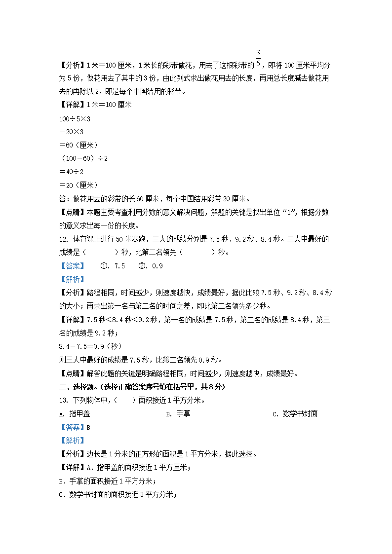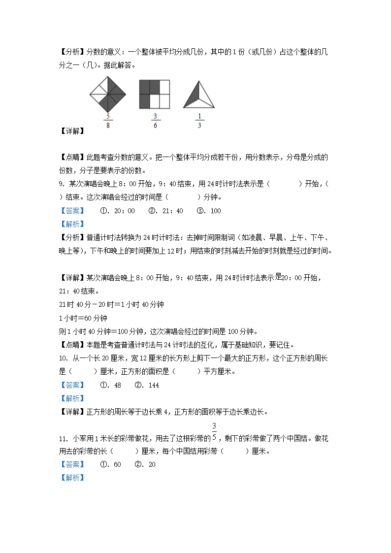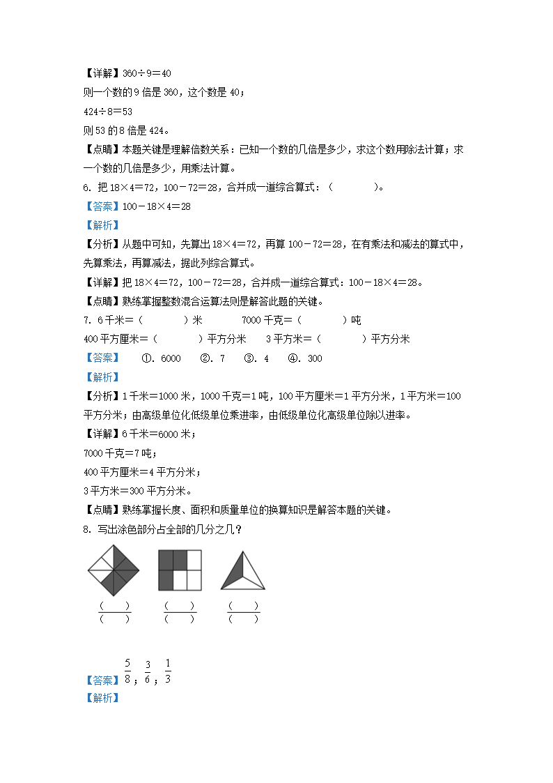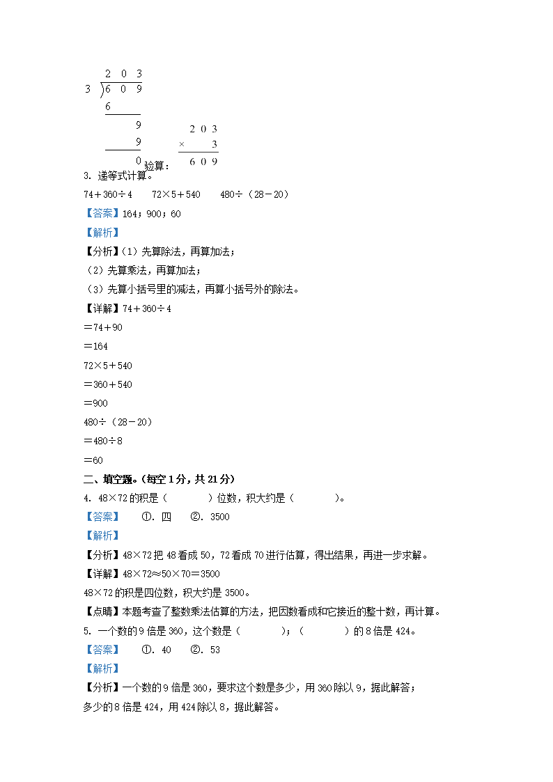2021-2022学年江苏省宿迁市苏教版三年级下册期末考试数学试卷及答案(Word版)07-26