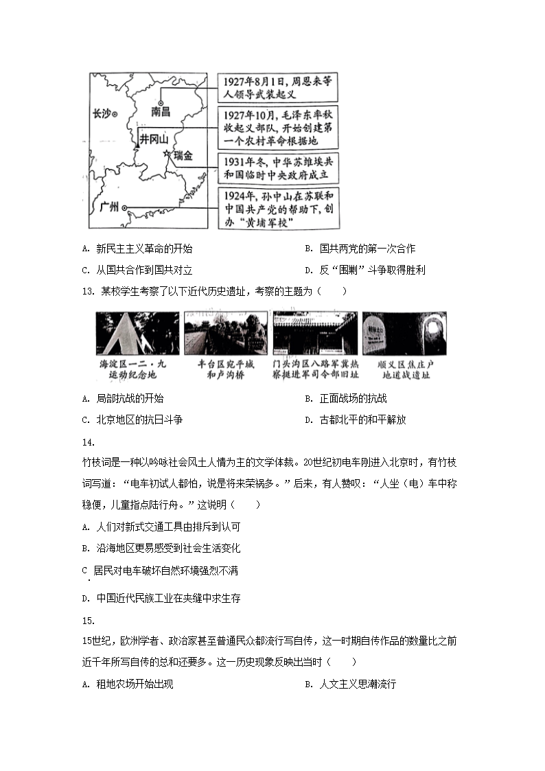 2023年北京西城中考历史真题及答案(Word版)08-12