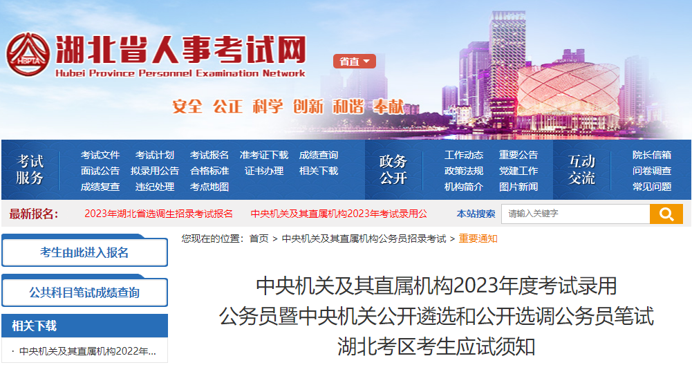 原文标题:中央机关及其直属机构2023年度考试录用公务员暨中央机关公开遴选和公开选调公务员笔试湖北考区考生应试须知