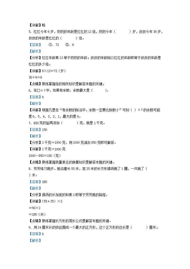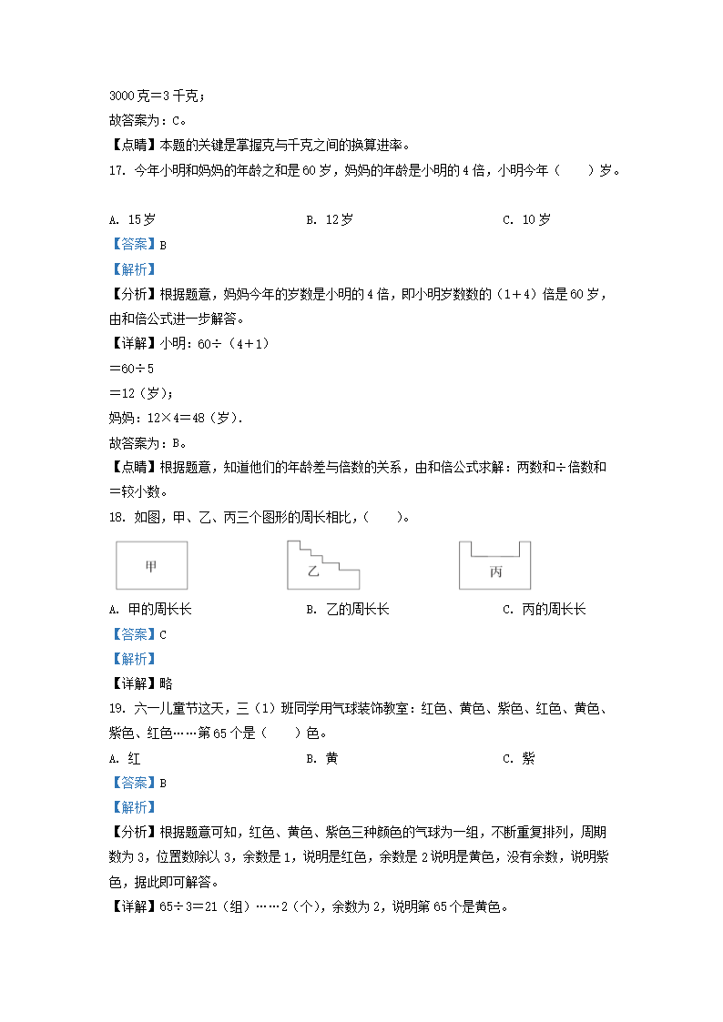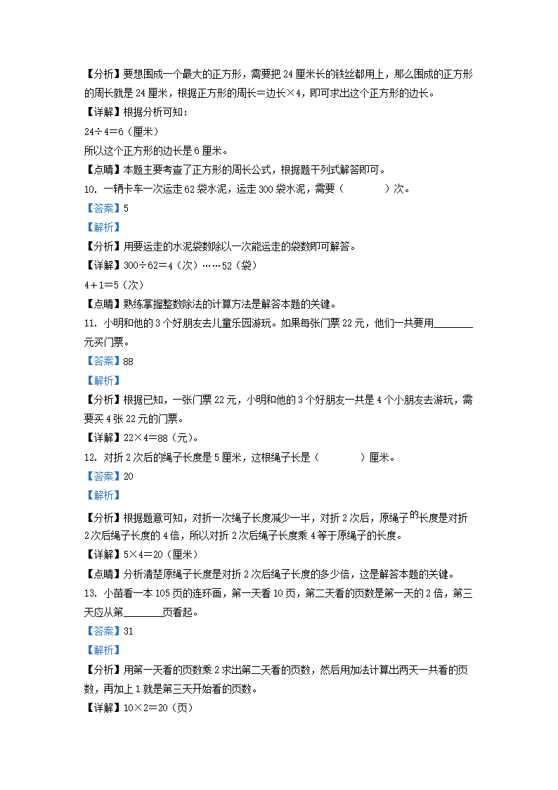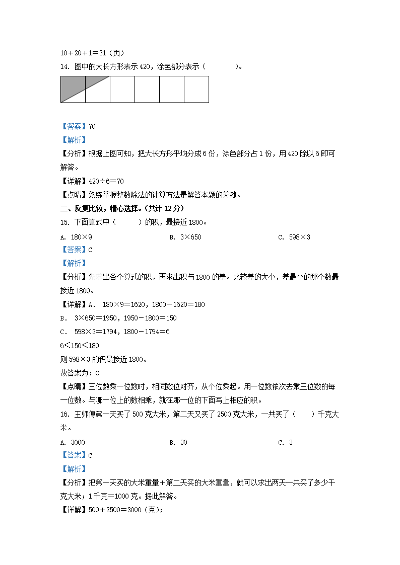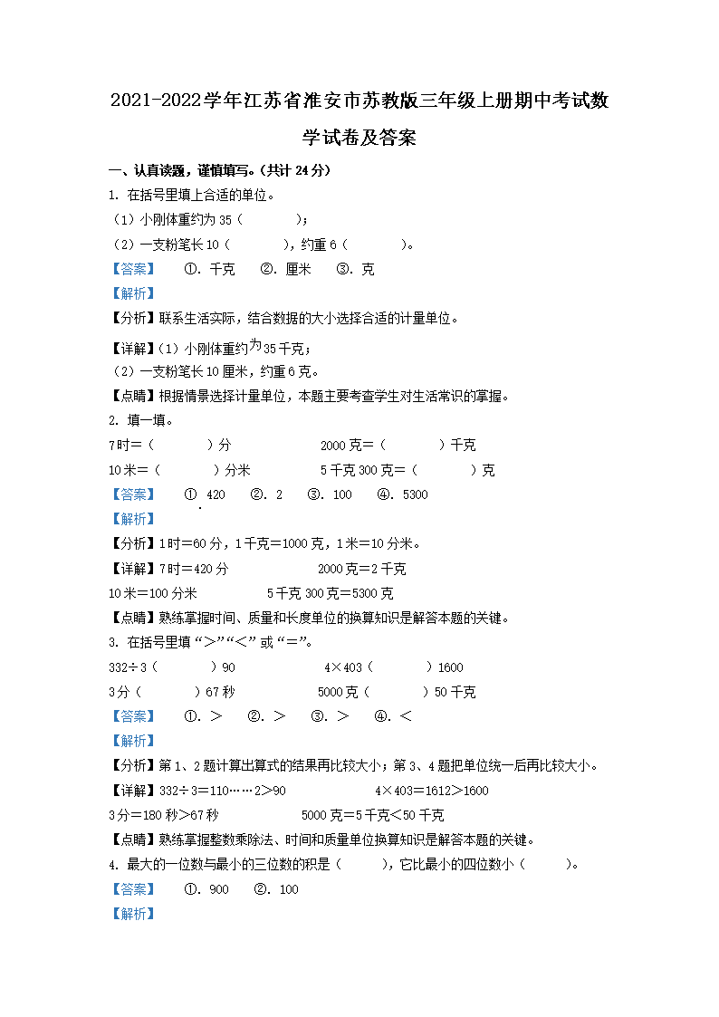 2021-2022学年江苏省淮安市苏教版三年级上册期中考试数学试卷及答案(Word版)08-01