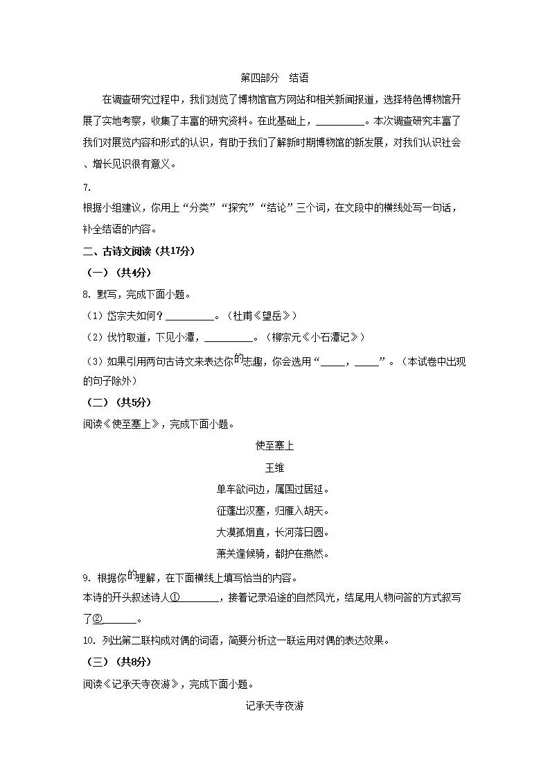 2023年北京怀柔中考语文真题及答案(Word版)07-26