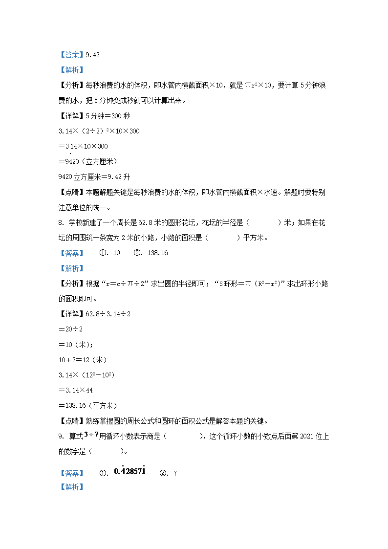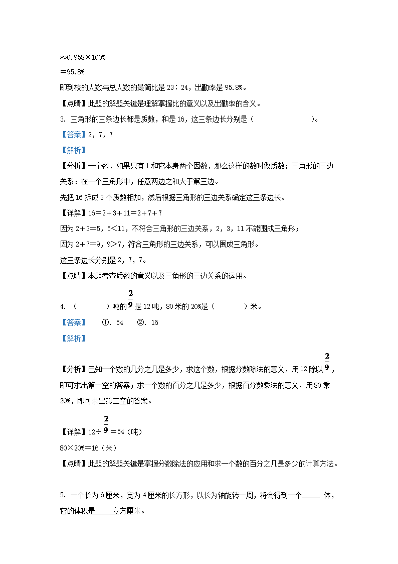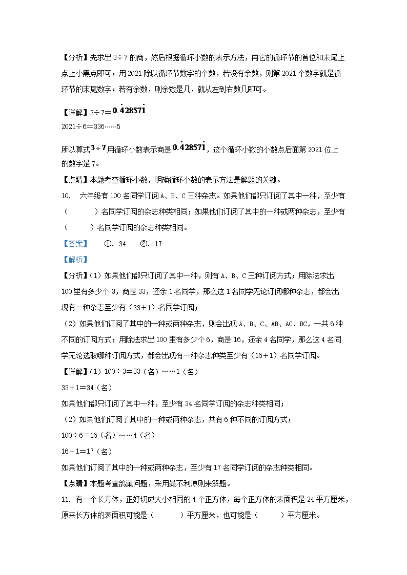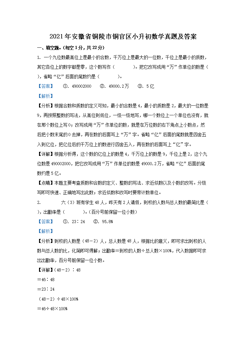 2021年安徽省铜陵市铜官区小升初数学真题及答案(Word版)09-23
