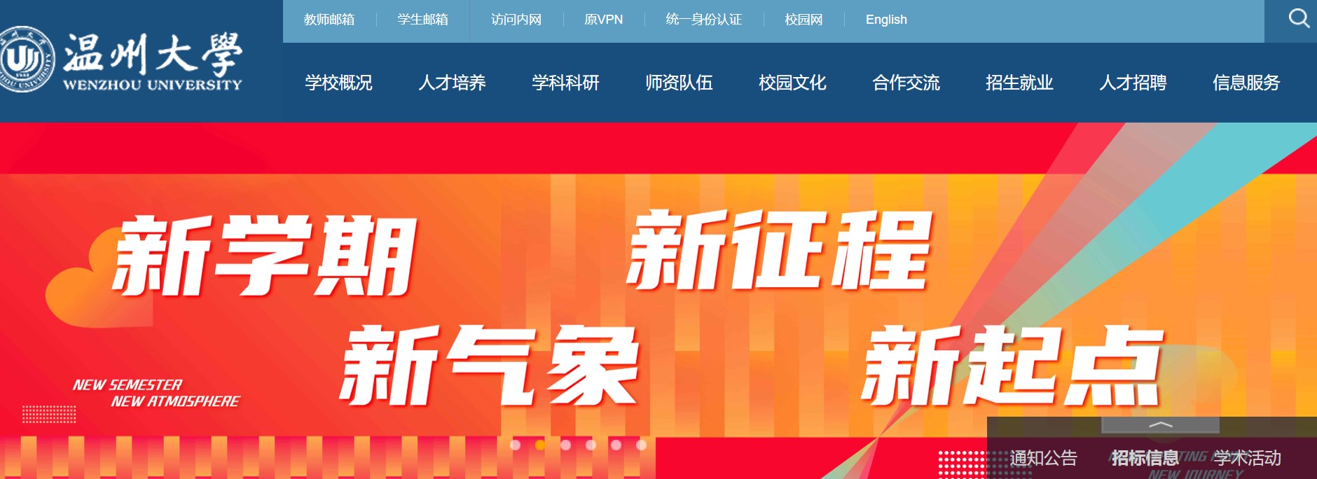 【#教育# #温州大学:https://www.wzu.edu.cn#】温州大学(Wenzhou University),简称“温大”,位于浙江省温州市,由温州市人民政府举办,是浙江省教育厅和温州市人民政府共建高校、“省市共建”浙江省重点建设高校,博士学位授予单位,入选教育部“卓越工程师教育培养计划”试点高校、首批创新创业学院建设单位、©文档大全网搜集的温州大学网站网址,仅供大家参考!