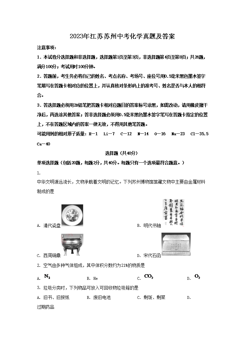 2023年江苏苏州中考化学真题及答案(Word版)06-22