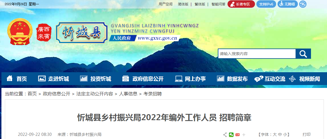 原文标题:忻城县乡村振兴局2022年编外工作人员招聘简章