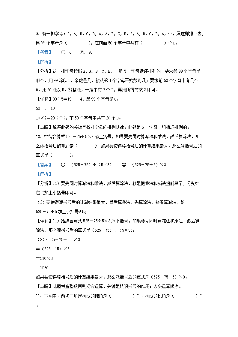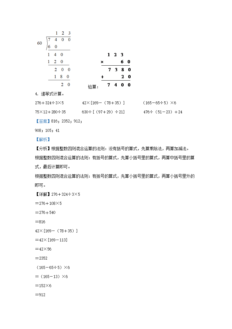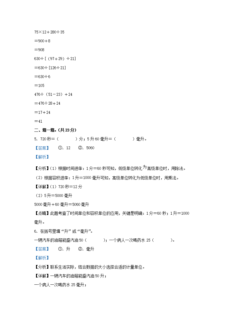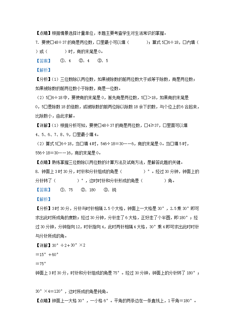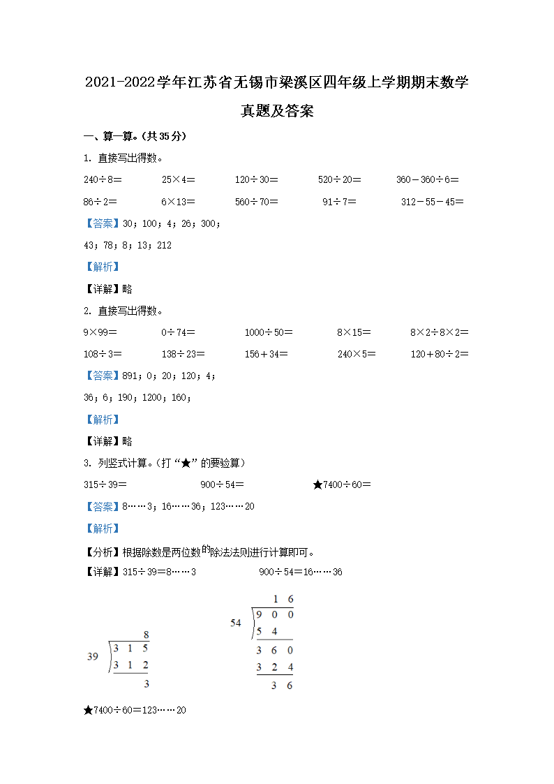 2021-2022学年江苏省无锡市梁溪区四年级上学期期末数学真题及答案(Word版)07-29