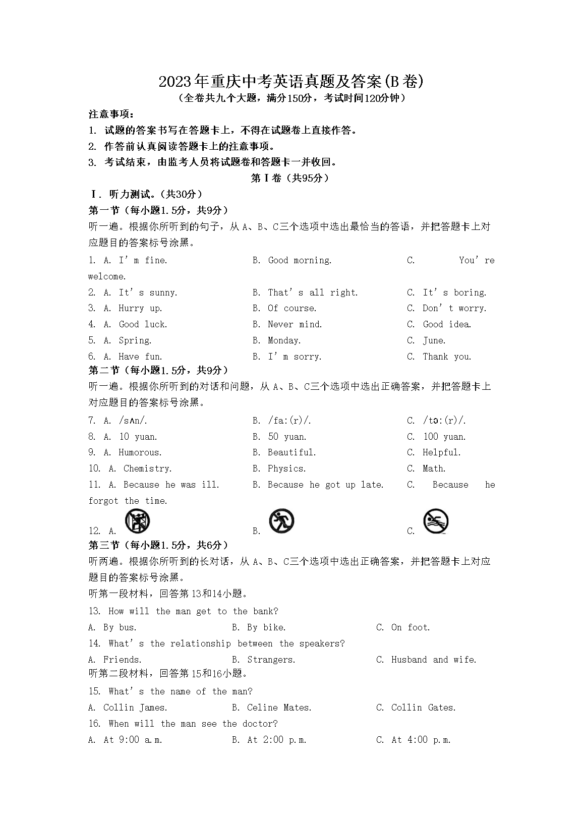 2023年重庆中考英语真题及答案(B卷)(Word版)06-17