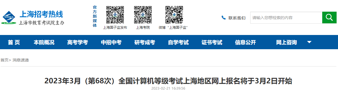 原文标题:2023年3月(第68次)全国计算机等级考试上海地区网上报名将于3月2日开始