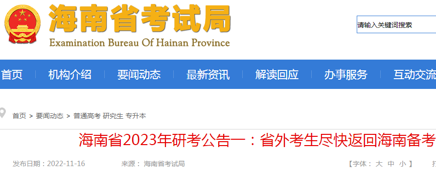 海南省2023年研考公告一:省外考生尽快返回海南备考11-17