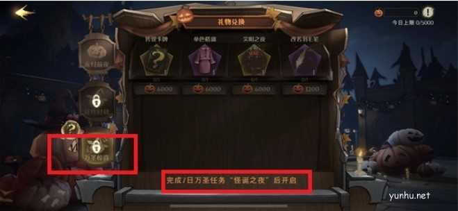 3、礼物兑换页面玩家们可以点击第三个选项【万圣惊喜】,不过玩家们需要完成游戏里面的怪诞之夜七日任务才能够开启;